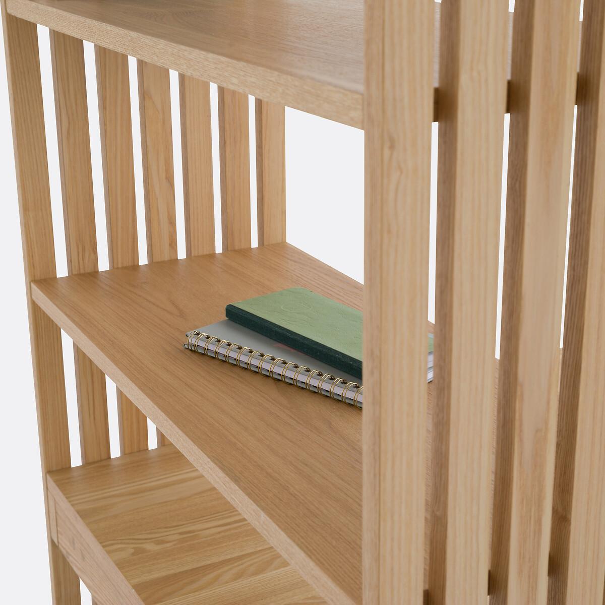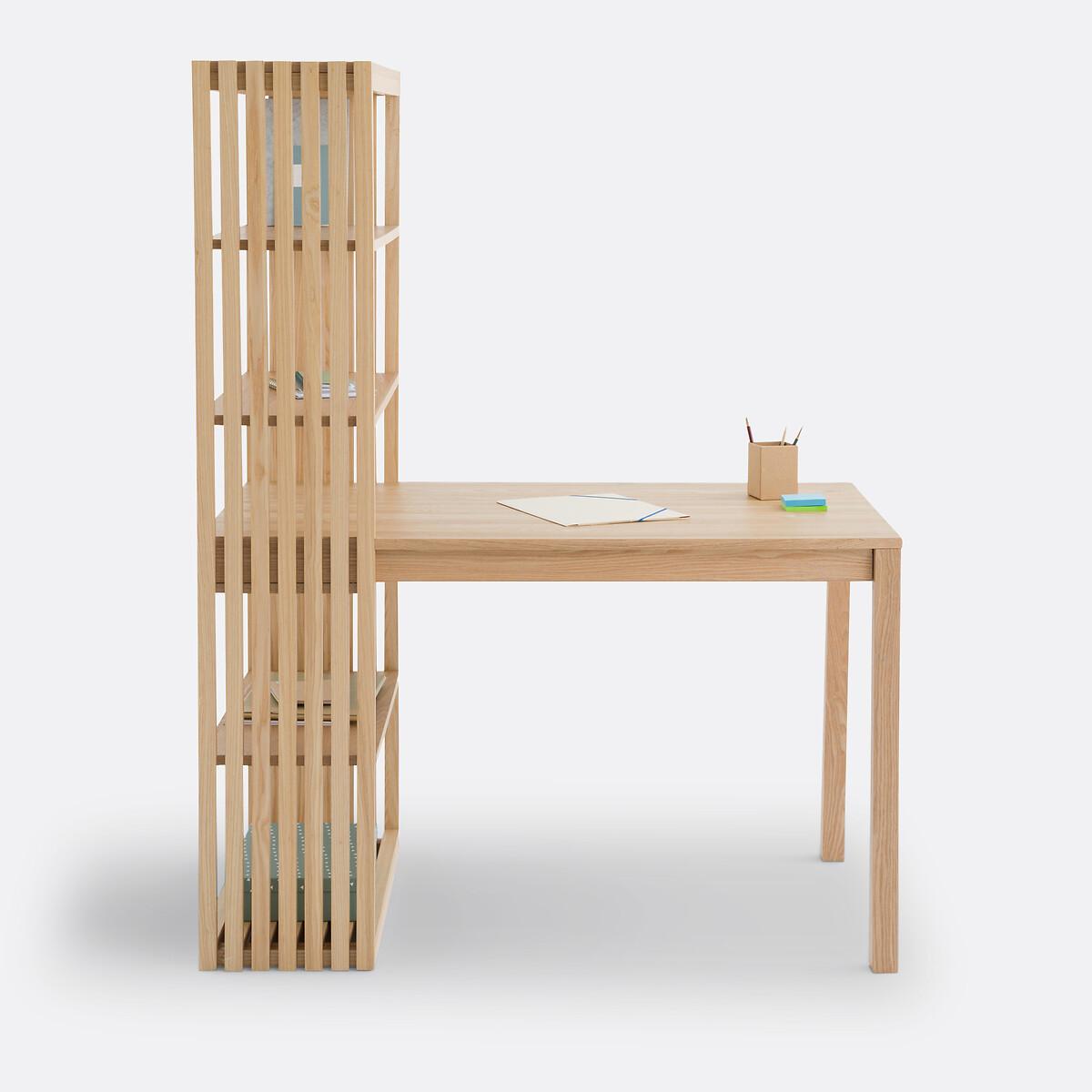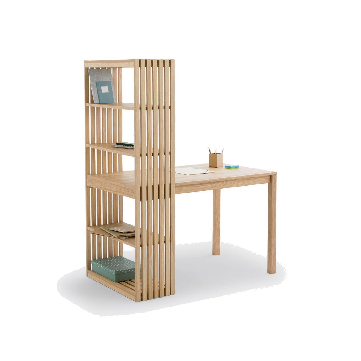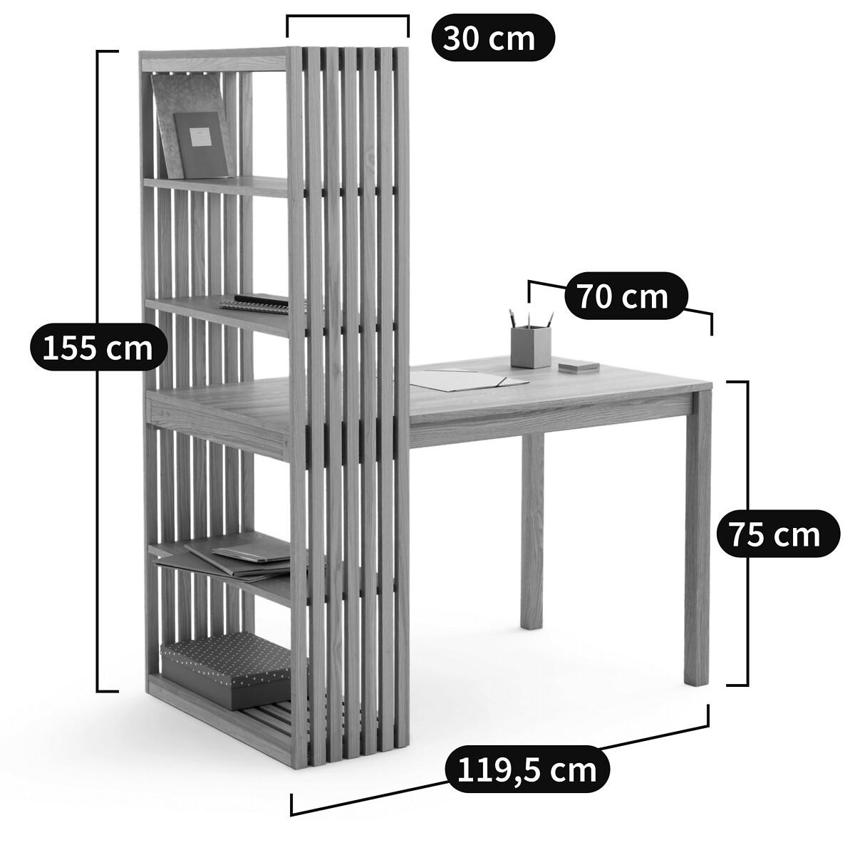 The Theonie chameleon desk is part of our Les Ingénieux collection. Creations full of ideas to make life simpler and everyday life more beautiful, imagined by our designers in Roubaix. For a well-designed living space: its bookshelf is placed on the right or left. Theonie adapts to your home. Why you'll love this product • Reversible bookshelf: offers a personalised way to improve your comfort and productivity. • Stylish and versatile: it blends into all interior styles and all spaces (small or large).Product Details • In MDF and ash veneered plywood, legs in ash veneered solid birch. Finish: nitrocellulose varnish • Bookcase with 5 shelves, good depth to accommodate books, filing cabinets, archive boxes, etc. • Large surface area for working comfortably. Dimensions. Overall • Width: 119.5cm • Height: 155cm • Depth: 70cm • Weight: 36.8kg Desk top • Width: 119.5cm • Height: 75cm • Depth: 70cm. Shelving • Width: 30cm • Height: 155cm • Depth: 70cmDelivery:. This product is sold for self-assembly. It will be delivered to your door. Note! Please check that all access points are large enough to accommodate your delivery (doors, stairs, lifts). • WOOD FROM SUSTAINABLY MANAGED FORESTS. FSC® certified wood comes from forests that are environmentally, socially and economically well managed. Dimensions and weight of parcel2 parcels • L130 x H81 x D19cm. 27.6kg. • L167 x H41 x D18.5cm. 15.7kg.