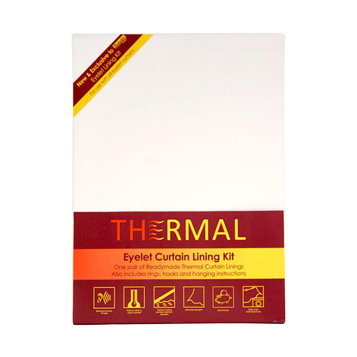 Designed with an eyelet header for a snug fit with your existing curtains, these thermal eyelet curtain linings deliver exceptional insulation. The thick thermal lining is fantastic for increasing your energy efficiency and for keeping your home cosy during the cold winter months. Additionally these linings help eliminate draughts and breezes, reduce noise, and impede the sun from fading your decor. Ideal for bolstering the performance of the curtains you love, our lining package contains simple instructions and all you will need to make hanging them simple and efficient. Our ready made pencil pleat and eyelet lining kits are intentionally manufactured 3-4" shorter than your main curtains so that when they are hung at the reverse of your main curtains, the top of the lining hangs 2-3" below the top of the main curtain and the base hem sits approx. 1" above the main curtain base hem. This is so the lining remains hidden and does not hang below the bottom of your curtains. Professional cleaning in Hydrocarbon or equivalent recommended.