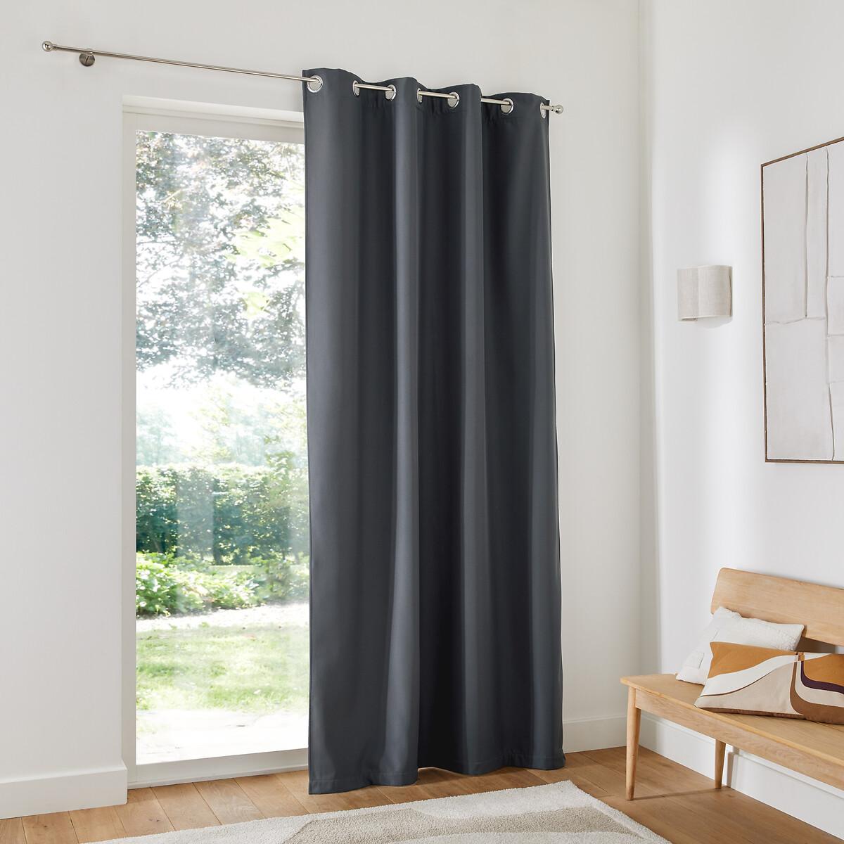 The Tobison thermal curtain. It preserves heat in the room thanks to its fleece lining. The thermal Curtain keeps out the cold in winter and the heat in summer. It can also be used as a blackout to protect you from outside light. The eyelets guarantee nice regular waves and ensure the fabric falls beautifully. They slide perfectly on the rod, making it easy to open and close the curtain. Product Details • Thermal • 100% polyester, (130g/m²) • 100% polyester tone-on-tone fleece lining (150g/m²) • Top finish : silver-coloured eyelets • Inner diameter of eyelets: 4cm • Finished bottom :Plain hemmed edging To help you in the choice and maintenance of your curtains, do not hesitate to consult our guide by typing "Curtain Buying Guide" in our search engine on the site. Care Advice • Machine washable at 30°C • Maximum shrinkage after washing : 3% approx. Fabrics made from natural fibres may shrink in the first wash. Always wash your curtains before making any alterations. • Do not tumble dry • If you don't need to iron them (linen curtains, Voile Panel...), let the curtains air dry by hanging them immediately after washing, making sure to spread them out to their full width. • If you want to iron your curtains, we recommend using a low-temperature steam iron or a steamer. Dimensions • Drop 180 x Width 140cm • Drop 220 x Width 140cm • Drop 250 x Width 140cm • Drop 350 x Width 140cm • OEKO-TEX® Standard 100. Standard 100 certification by OEKO-TEX® tests textile products for harmful substances via an independent, international label.