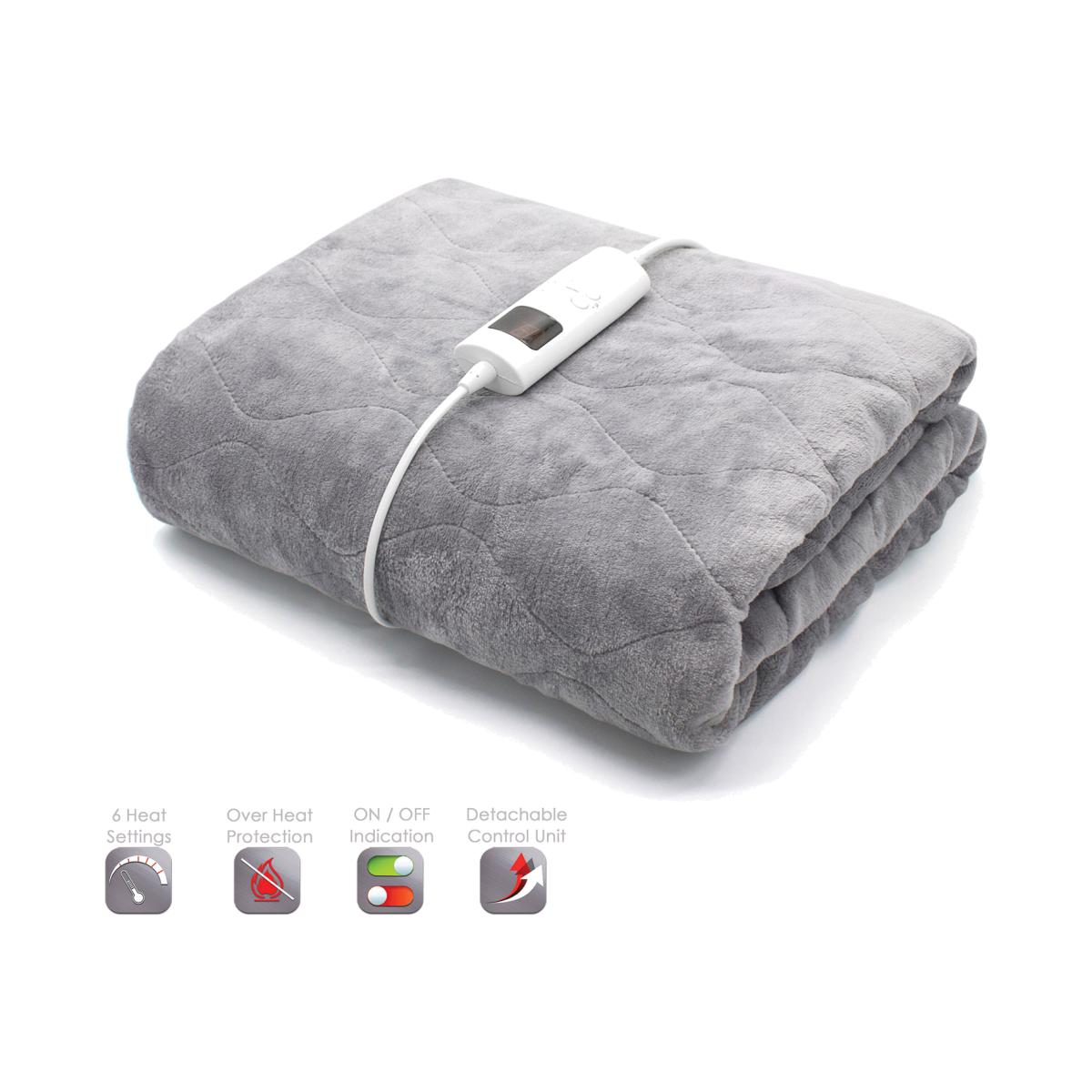 High-Quality Electric Heated Blanket designed for year-round comfort. Dimensions of 130cm x 160cm offer a luxurious Soft Plush Velvet Feel. The convenient controller features 6 Heat Settings, enabling you to achieve your desired temperature in minutes. The built-in protection against overheating ensures safety by automatically switching off if excess heat is detected. Enjoy ease of use with the detachable control unit. Included in your purchase is an Instruction Manual, please read it before use. For longevity, this blanket is machine washable and easy to maintain simply follow the care instructions provided.