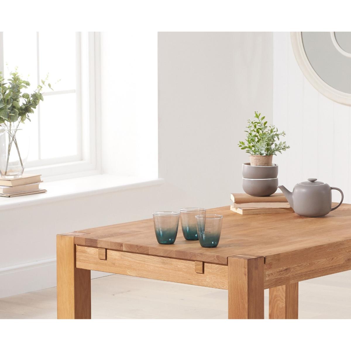 Thetford 120cm Oak Table With Ruben Faux Leather Chairs are beautiful solid oak, strengthened with finger joints.