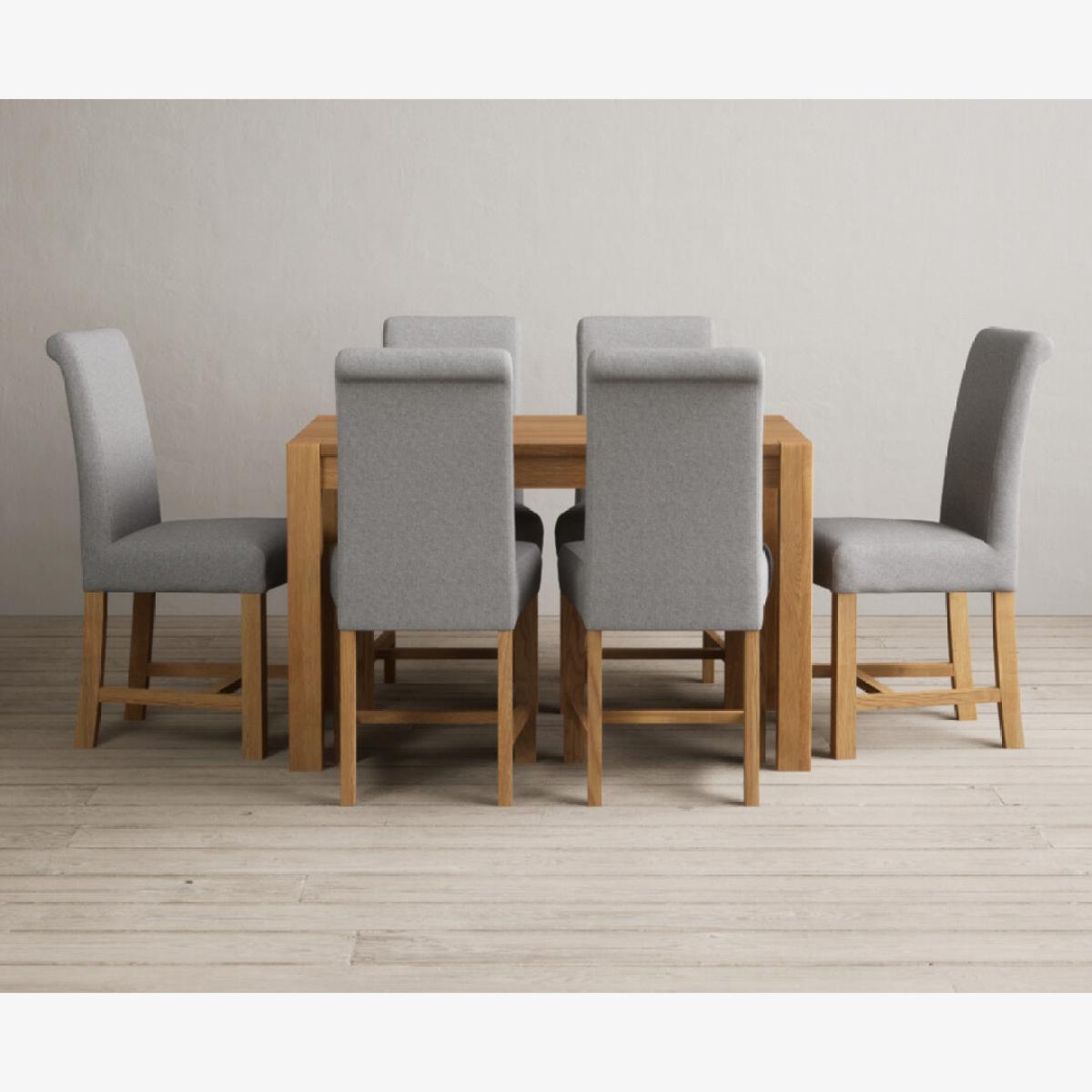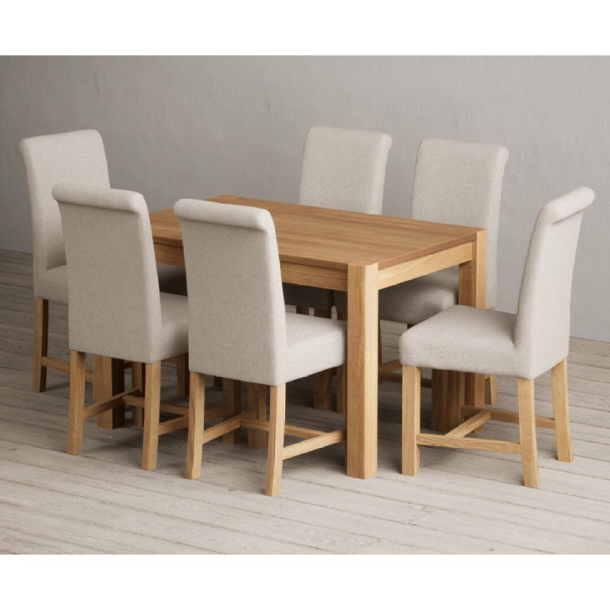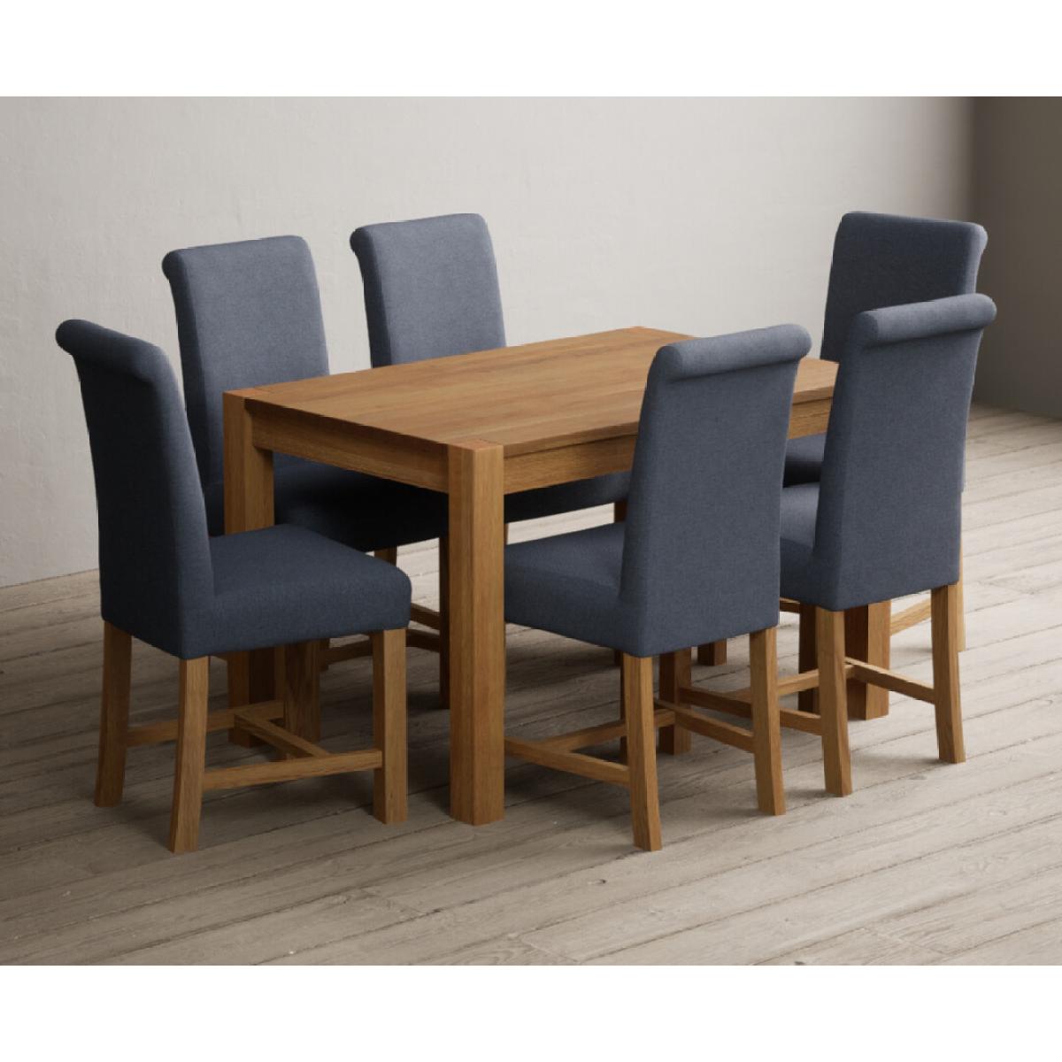 Thetford 120cm Oak Dining Table with 6 Natural Scroll Back Chairs