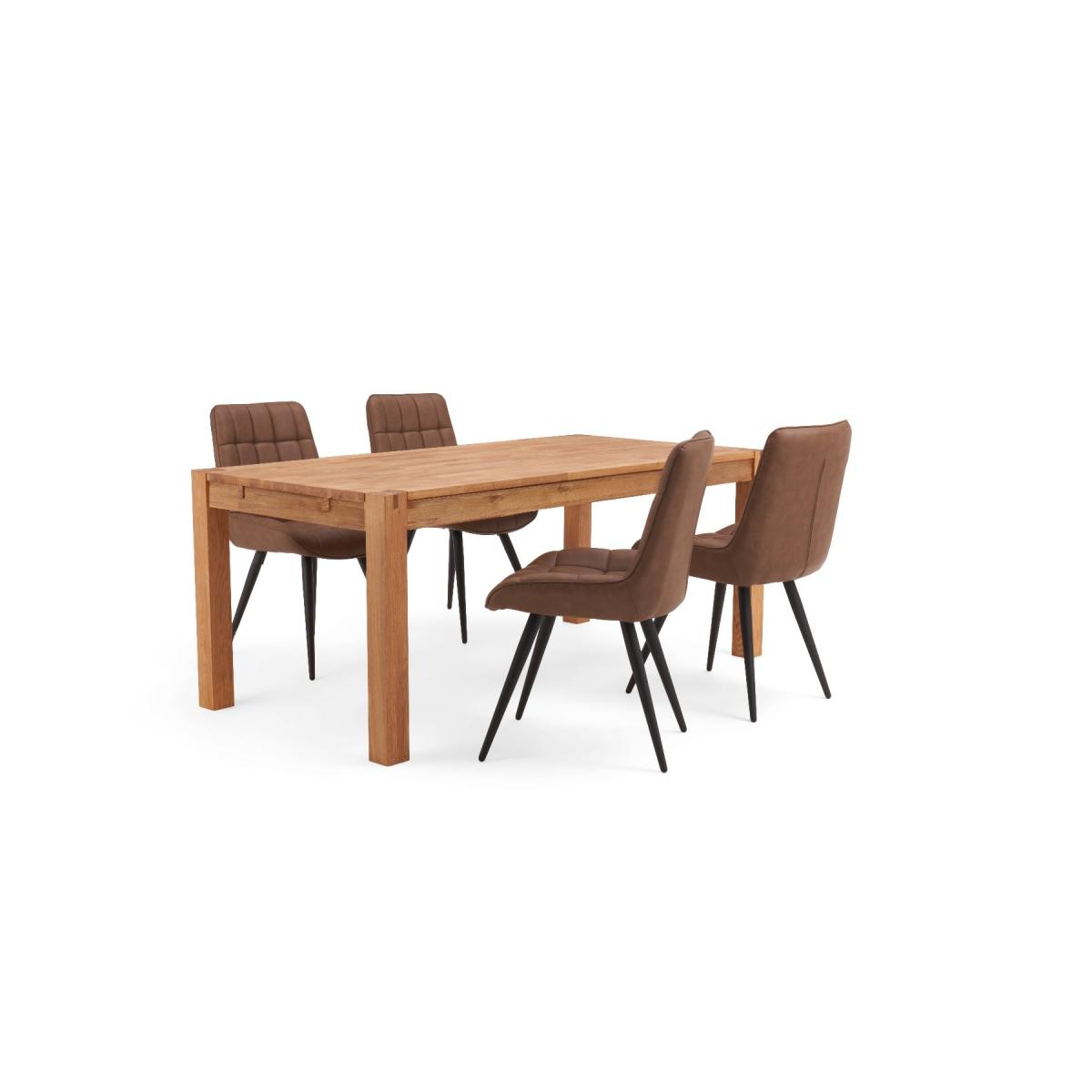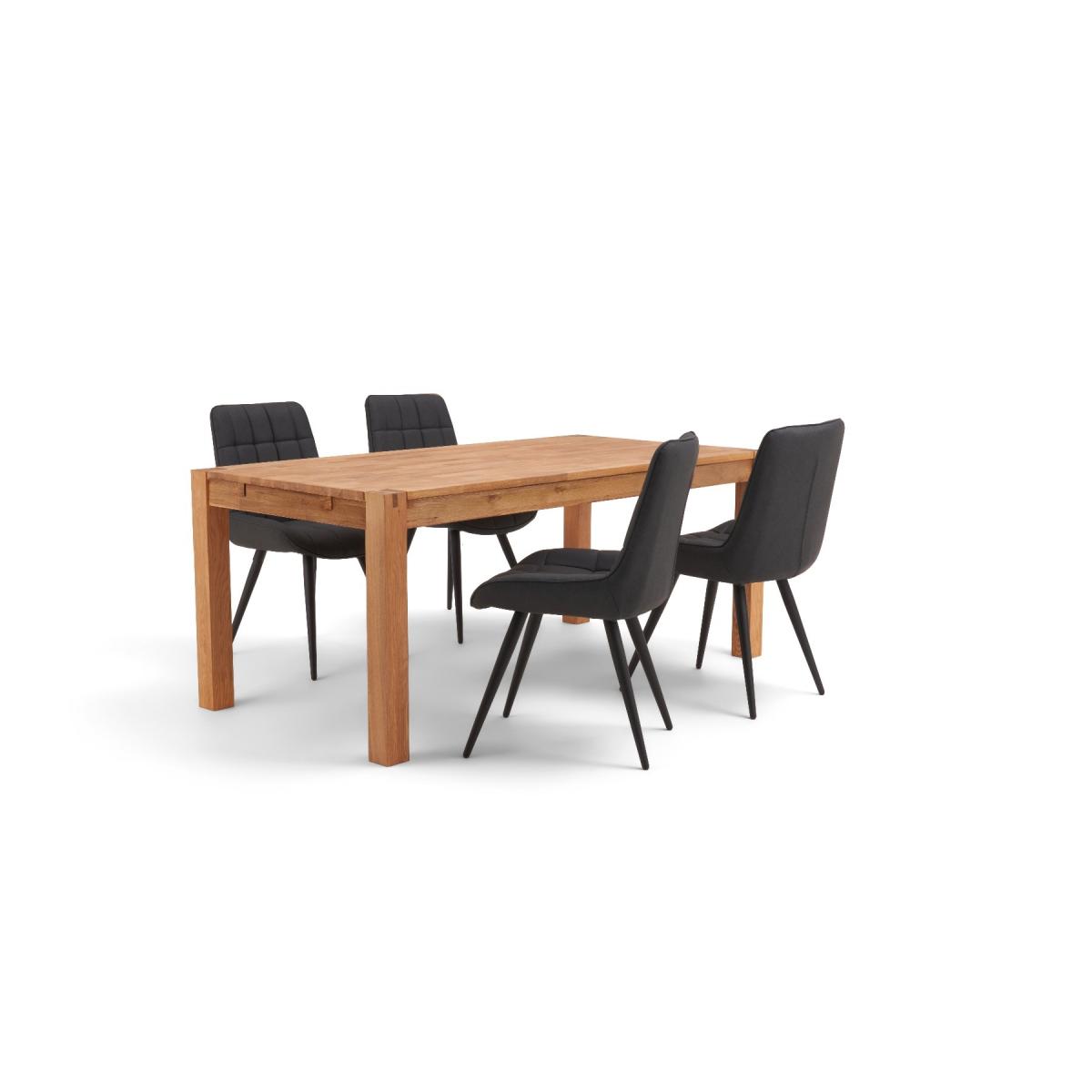 Stylish solid oak dining table with chairs. Comes in a range of sizes and is made of strong lines and square shapes for an attractive look.