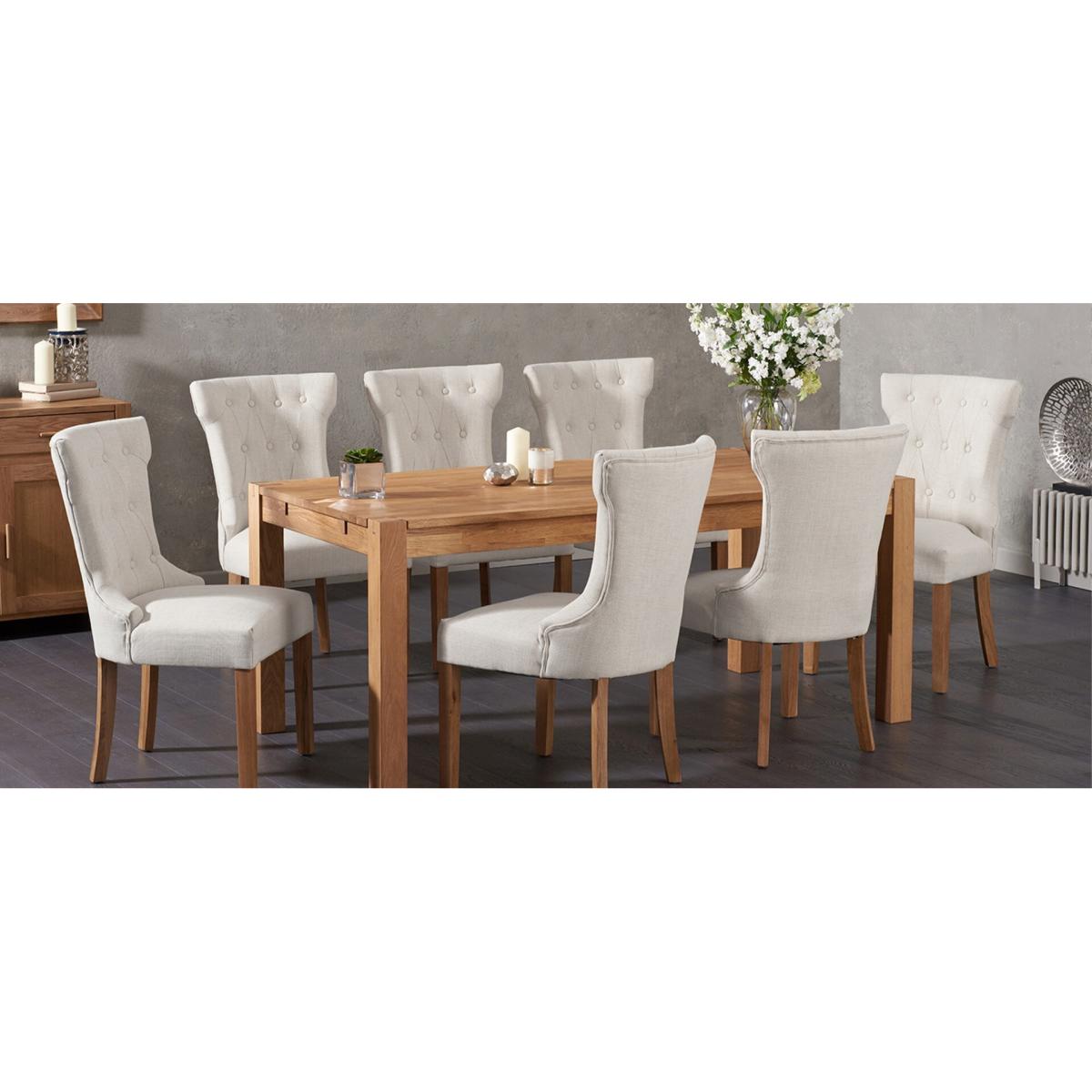 Thetford 180cm Solid Oak Dining Table With 8 Natural Clara Fabric Chairs