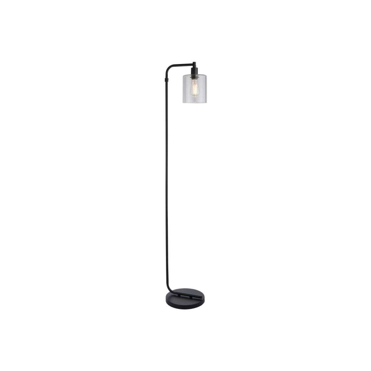 A modern floor light for contemporary interiors. Matt black painted finish with clear glass shade and inline foot switch. Colour: Black. Lamp Holder Type: E27. Bulb Type: GLS. Maximum Bulb Wattage: 40. Bulb Included: No. Number of Bulbs: 1.