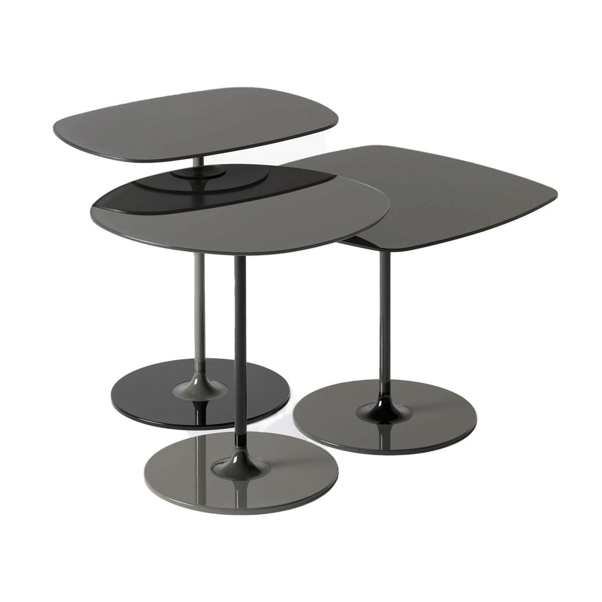 These little jewel-like tables are composed of glass tabletops and colourful metal legs. With their ultra-glossy lacquered finish and vibrant colours, these tables are like precious gems! The legs and tabletops boast contrasting colour combinations: one table can be coloured with three or four different tones from the same colour family. With their cheerful and modern look, these ultra-décor coffee tables can be used in any space! They illuminate and add character to any space. It's simply an essential to create stunning compositions by mixing and matching their sizes and colours.