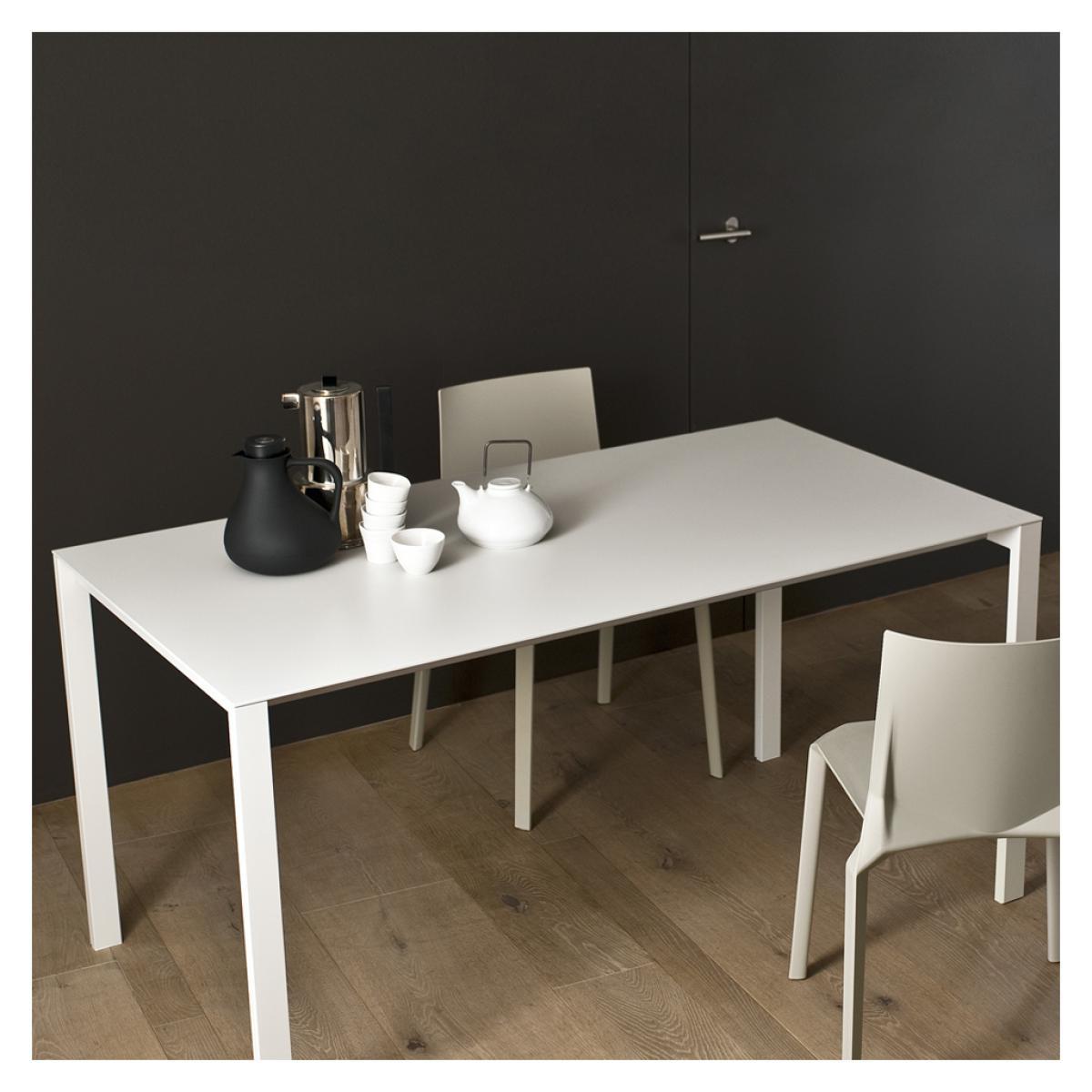 Designed by Luciano Bertoncini for Kristalia, this streamlined, elegant white Thin-K Extending Table is a truly unique piece. Bertoncini's desire to create something that appears delicate, while maintaining strength, is realised in the Thin-K design. This uncomplicated, versatile table has clean lines and is crafted from strong aluminium with an incredibly thin yet durable surface. The table's extension is hidden neatly within the 6mm table top; its simple mechanism makes the Thin-K easy to adapt, simply fold out whenever there is a requirement for additional table settings. Thin-K would make an ideal addition to your kitchen or dining space; as a truly accommodating table, it would be the perfect host for large family gatherings and spontaneous dinner parties alike. In efforts to be eco-responsible, the Thin-K Extending Table is crafted from 100% recyclable materials.