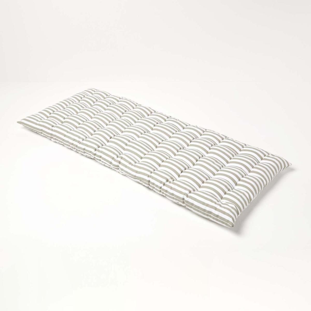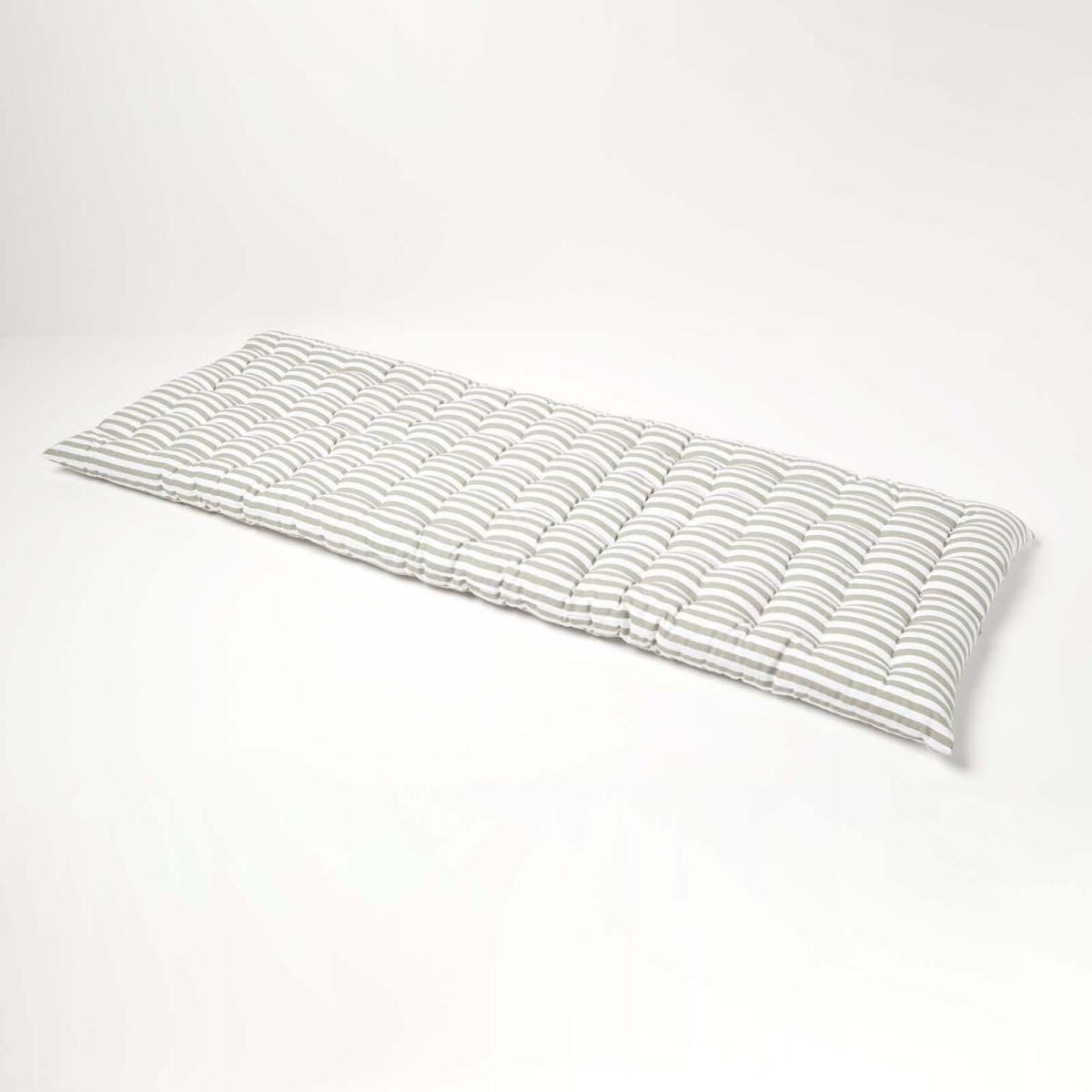Super soft and supportive outdoor and dining bench cushions that will add a burst of colour to your home and garden. Available in 2 and 3 seater bench sizes this exclusive range includes plain and patterned designs including striped, tartan and polka dot styles. Homescapes bench seat cushions are woven from durable 100 cotton and generously filled to provide lasting comfort. Perfect to use as a bench cushion or back rest, these multi-functional cushions can be used outdoors on garden furniture or as garden floor cushions as well as indoors in bay window seats and on dining benches. One of the UKs largest collections of outdoor cushions, matching chair cushions are also available, sold individually or in sets of 4 and 6 you can co-ordinate or mix and match chair and bench cushions to compliment any interior or garden style. A quick and affordable way to transform furniture, bench pads and seat cushions are great for adding colour and comfort to your garden and dining furniture. Each pad features a quilted tufted effect, can be machine washed at home and has been expertly crafted for durability and lasting colour. Cushion pads are not waterproof, do not leave outside when not in use.