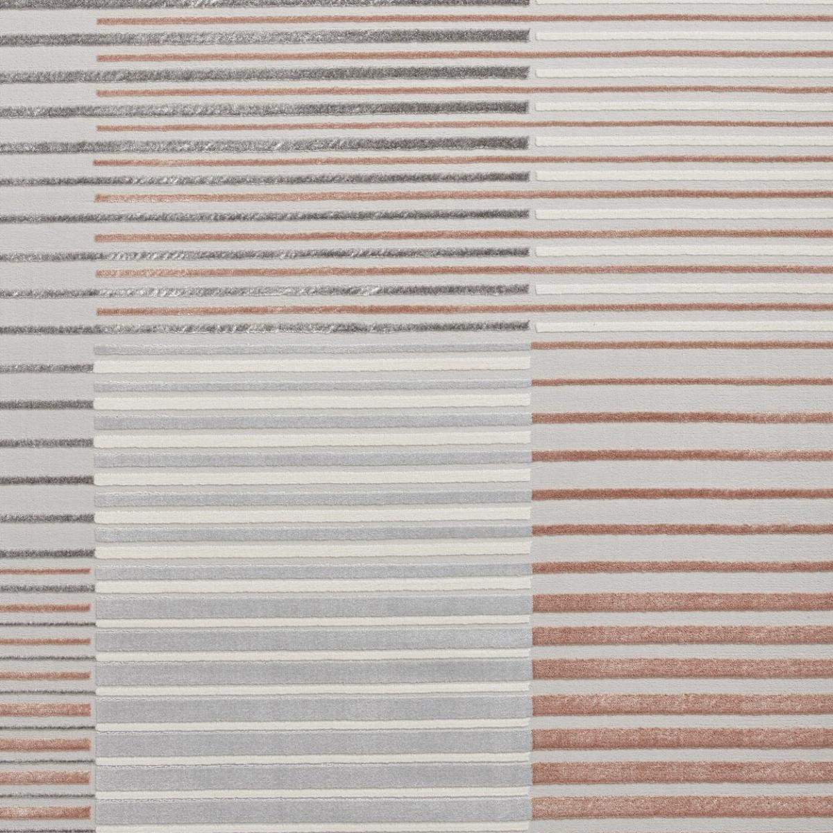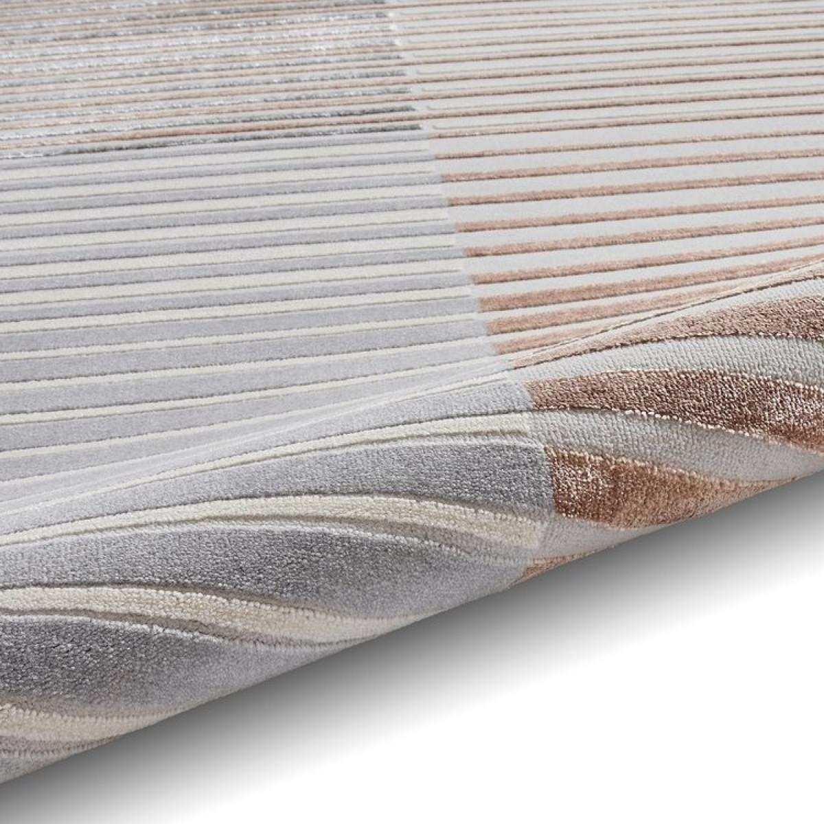 Metallic Effect Design. High Density Pile. The modern, abstract designs of the Apollo range are accentuated with the use of multiple textures and fibres. The machine-made weaving using polypropylene and polyester piles creates a dense and soft feel while adding a high level of detail to the designs.