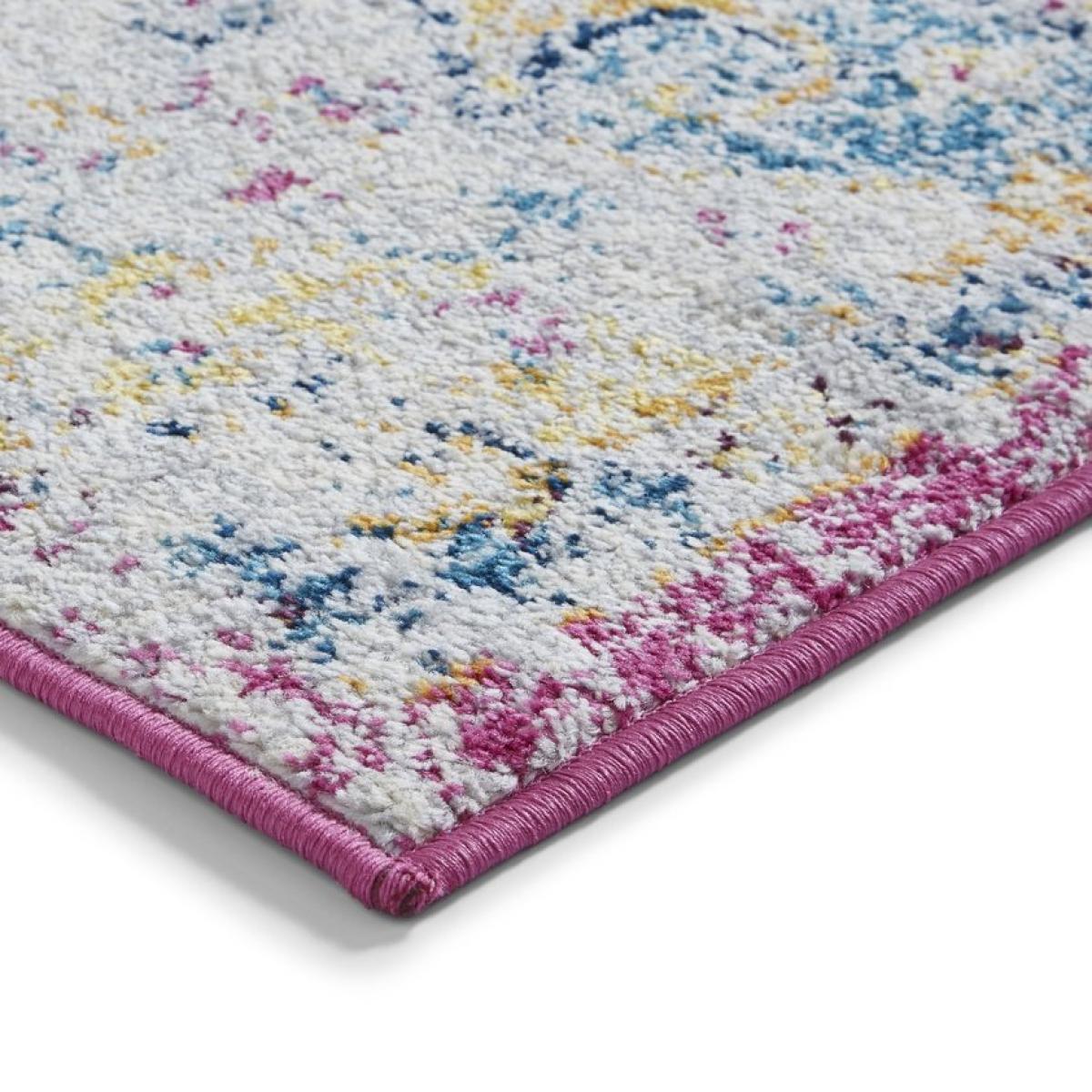 This rug offers a vibrant splash of colour that can really energise a living space, making it perfect for adding a pop of personality to neutral interiors. I love how the rich fuchsia and blue tones can tie together colour schemes that include similar hues, or provide contrast in more understated settings. Its size makes it versatile for living rooms or bedrooms, especially underneath coffee tables or at the foot of a bed. For styling, consider pairing it with minimalist furniture to let the pattern and colours stand out, or add coordinating cushions and throws for a cohesive look. The durable construction also ensures it will withstand everyday living, making it both a stylish and practical choice.