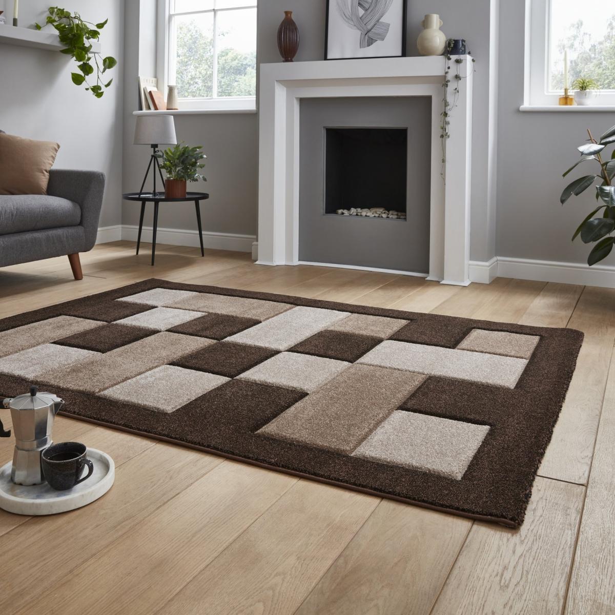 The Think Rugs Brooklyn BRK04 is a versatile choice, thanks to its warm brown and beige tones that can seamlessly complement both modern and traditional interiors. I love how its geometric pattern adds visual interest without overwhelming the space, making it perfect for living rooms or more relaxed lounges. It works particularly well layered over light wood or neutral flooring, as seen in the image, to create a cosy yet stylish atmosphere. Practical styling tips include pairing it with neutral furnishings to let the rug stand out, or adding textured cushions and throws in similar colour schemes for a cohesive look. Its 060 x 120 size makes it ideal for defining seating areas without dominating the room.