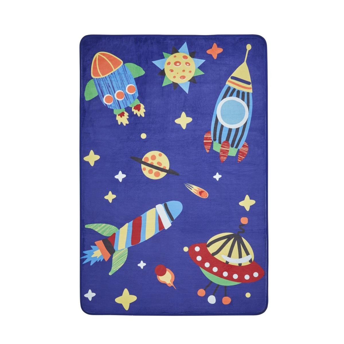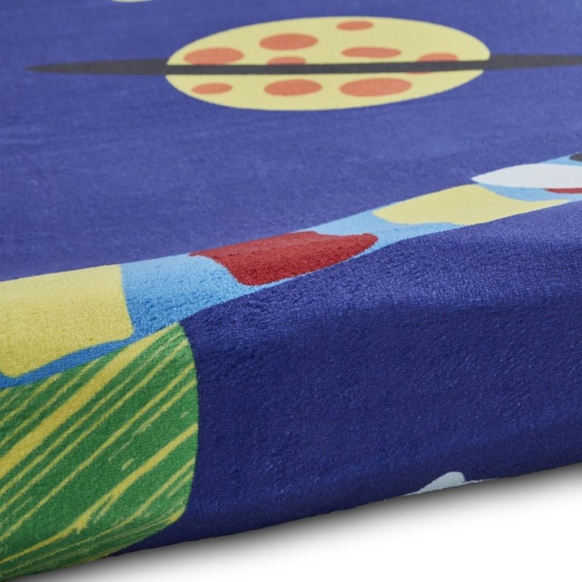 This rug is a great choice for adding a pop of colour and playful energy to a child's bedroom or playroom. I love how the bold blue background provides a vibrant base that can complement a range of colour schemes, especially with primary colours and neutrals. It works well in modern or slightly more casual interiors, helping to define a cosy space for kids. Practical styling tips include layering it over a neutral printed carpet or using it as a statement piece alongside minimalist furniture to keep the focus on the design. Its size makes it versatile for smaller rooms or to bring a lively element into larger spaces without overwhelming them.