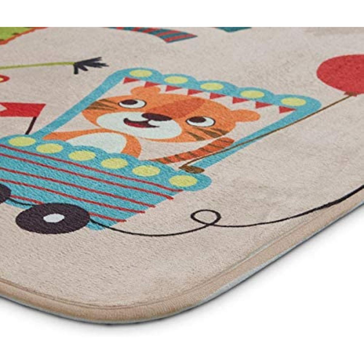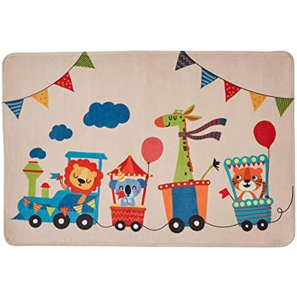 This beige rug is a versatile piece that works well in a variety of interiors, especially those aiming for a cosy and inviting feel. Its neutral tone makes it easy to layer with colourful accessories or furniture, while offering a subtle backdrop that complements both modern and traditional schemes. I love it for nurseries or children’s rooms, as its playful train design adds a cheerful touch without overwhelming the space. Practical styling tips include pairing it with wooden or pastel furniture to keep the look light and friendly, and placing it under a bed or in a sitting area to anchor the space effectively. It’s a great choice for adding warmth and personality to a child's room or family area.
