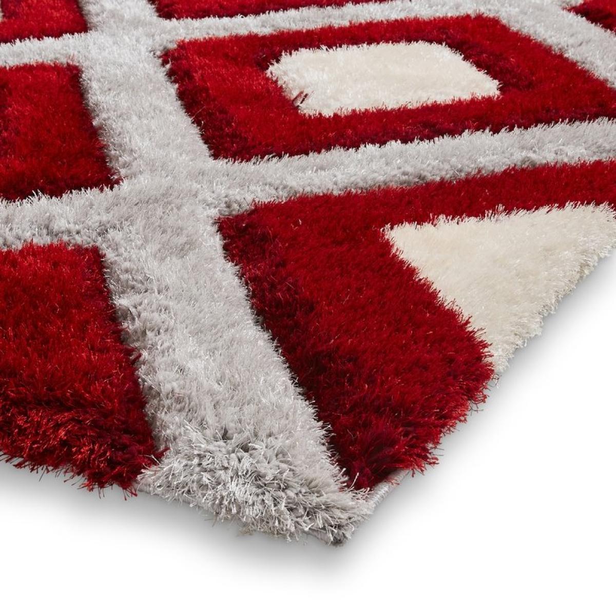 3D Design. Thick Shaggy Pile. Machine made with polypropylene and polyester our Olympia range shows off a modern geometric design. Hand carved to create a deep 3D effect.