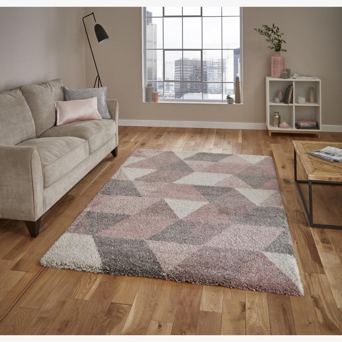 This rug offers a great balance of pattern and colour, making it versatile for a variety of interiors. I love how the warm rose and cream tones add subtle sophistication without overwhelming the space. It works particularly well in neutral and contemporary settings, adding a touch of visual interest to living rooms or bedrooms. Practical styling tips include layering it with larger plain rugs for a cosy, layered look, or using it to define a seating area. Because of its size, it’s ideal for smaller to medium-sized rooms, helping to anchor furniture without dominating the space. Its pattern and colours make it easy to incorporate into both modern minimalism and more eclectic styles, offering flexibility in styling choices.