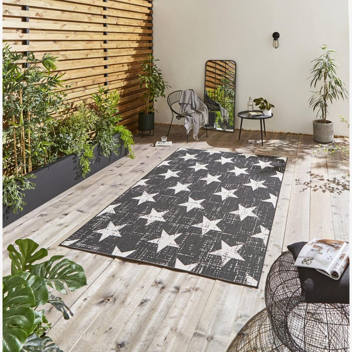 The Santa Monica black and white rug is a versatile piece that adds a contemporary edge to a variety of interiors. Its bold star pattern makes it particularly well-suited for modern, eclectic, or casual spaces where it can serve as a statement element. I love how it anchors a room without overwhelming, making it ideal for bedrooms, living rooms, or even a home office. Practical styling tips include pairing it with neutral furniture to let the pattern stand out, or layering with textured textiles for a cosy feel. Its size is perfect for defining a seating area or adding visual interest to a larger open space. Overall, it's a stylish yet functional choice that can elevate any interior with minimal effort.