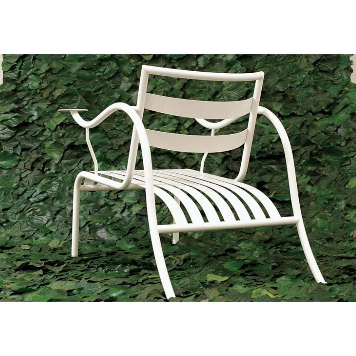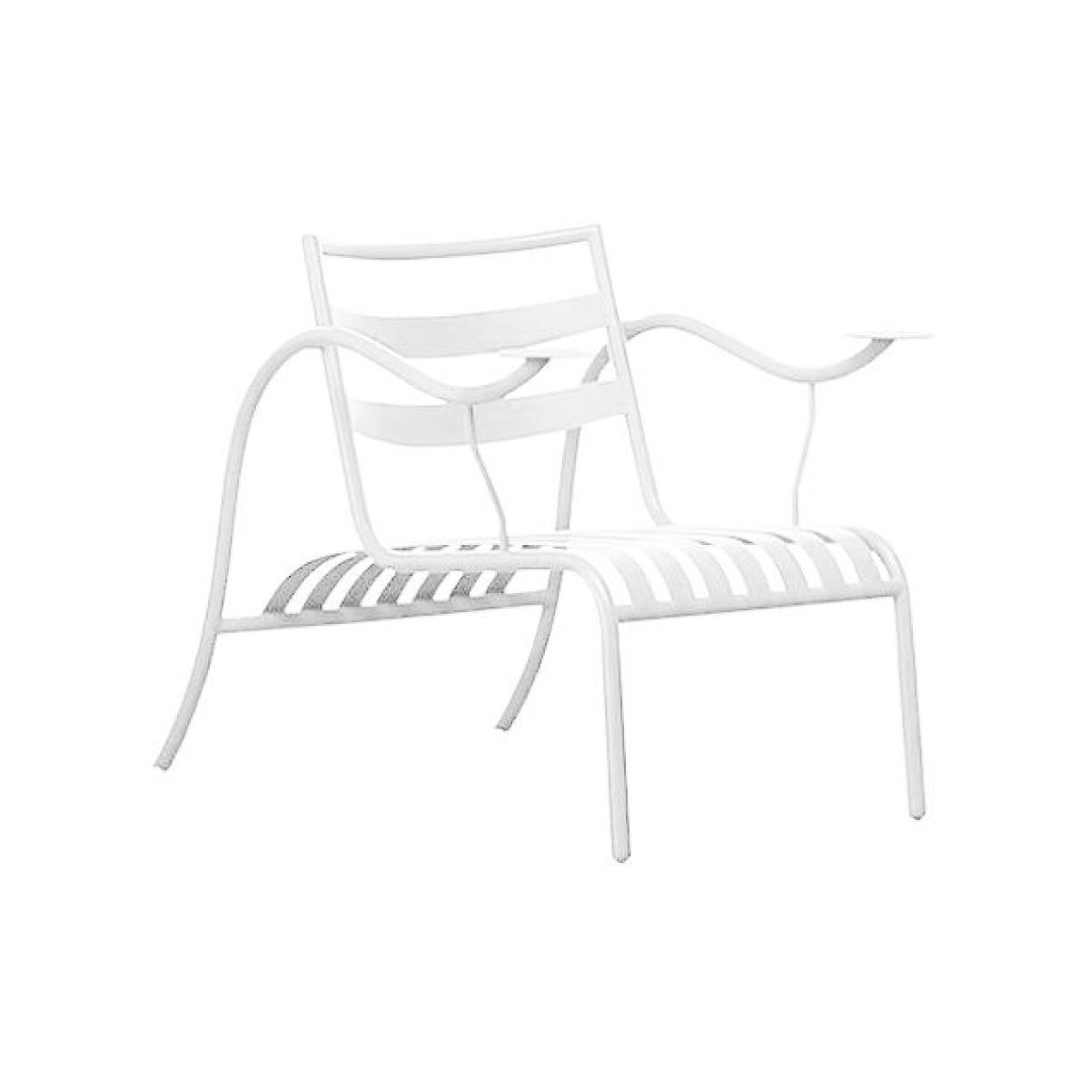 Treat yourself to an ORIGINAL iconic piece by Cappellini. An original will never lose its value. It will stay with you for your whole life, and even longer, perfect for passing on to the next generation. British artist Jasper Morrison is one of the most acclaimed industrial designers of recent decades. A champion of the "super-normal", he advocates sober, useful, responsible design. His creations can be found in the Museum of Modern Art in New York and other collections of eminent museums around the world. Originally designed for a fairground in Japan, the Thinking Man's Chair was intended to be an extremely limited edition series product. An eloquent name for a product which calls for meditation and relaxation. Marking the beginning of the collaboration between the English designer and the Italian creative house of Cappellini, the Thinking Man's Chair has been in production since 1988. This armchair embodies visual simplicity, where the curve in itself is, to put it simply, enough. Jasper Morrison tells how, after having noticed a chair with a missing seat in an antiques market, he had the idea of basing an armchair design on purely structural elements. Thinking Man’s Chair is a piece centred around function: a useful design, where quality is prioritised. Jasper Morrison thus came up with a design in which all of the elements serve a specific function: ensuring long-lasting comfort when seated, meaning that you can sit back and truly relax. The tubular steel structure is like a reminder of the modernist seating of the 1920s and 1930s, which Jasper Morrison loved for their resistant and modular shapes which submitted to their function. The Thinking Man's Chair armchair appears to stretch out thanks to the two curves at the rear, extending to the bending armrests, to create a highly graphic style. The seat owes its suppleness to the flat metal bands, curved like those found in some garden chairs. The backrest is composed of two large curved bands. There are two small, circular trays at the end of each armrest, perfect for holding a glass and a bottle. Ideal for indoor and outdoor use, Thinking Man's Chair plays on the simplicity of a line consisting purely of curves, like an essential visual expression, leaving free reign to its function. Thinking Man's Chair is an armchair that makes you want to display like a sculpture, whether it's in the garden or in a living room.