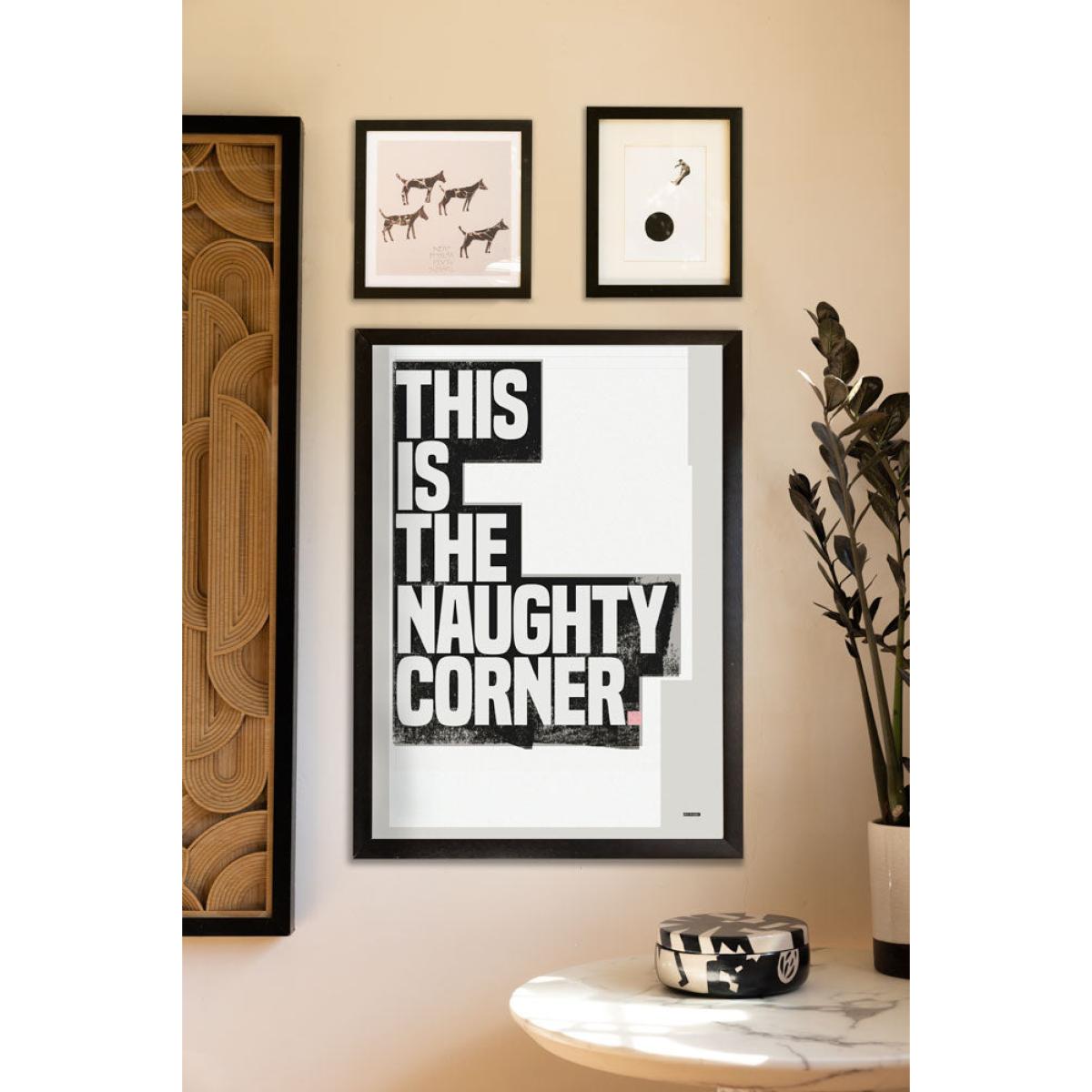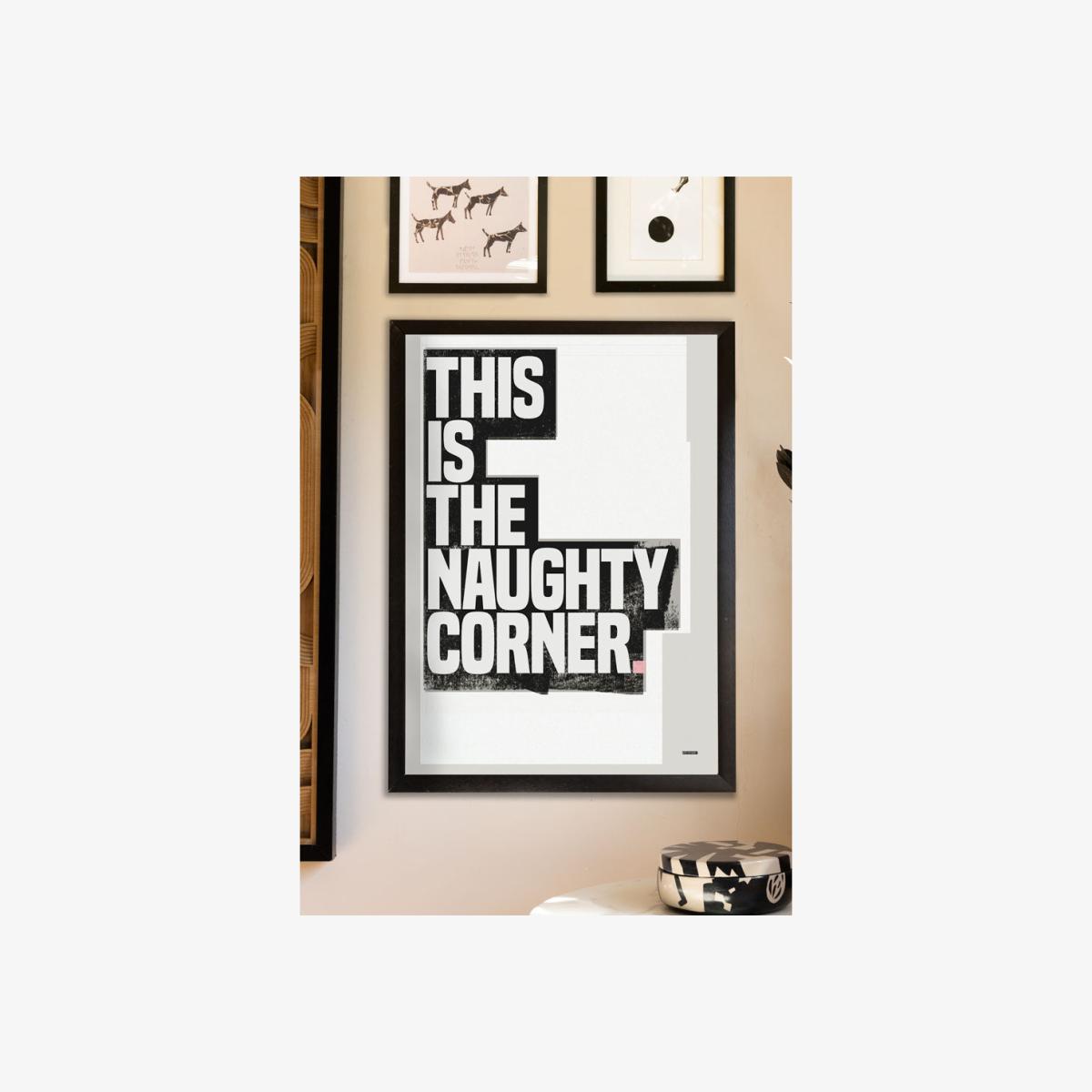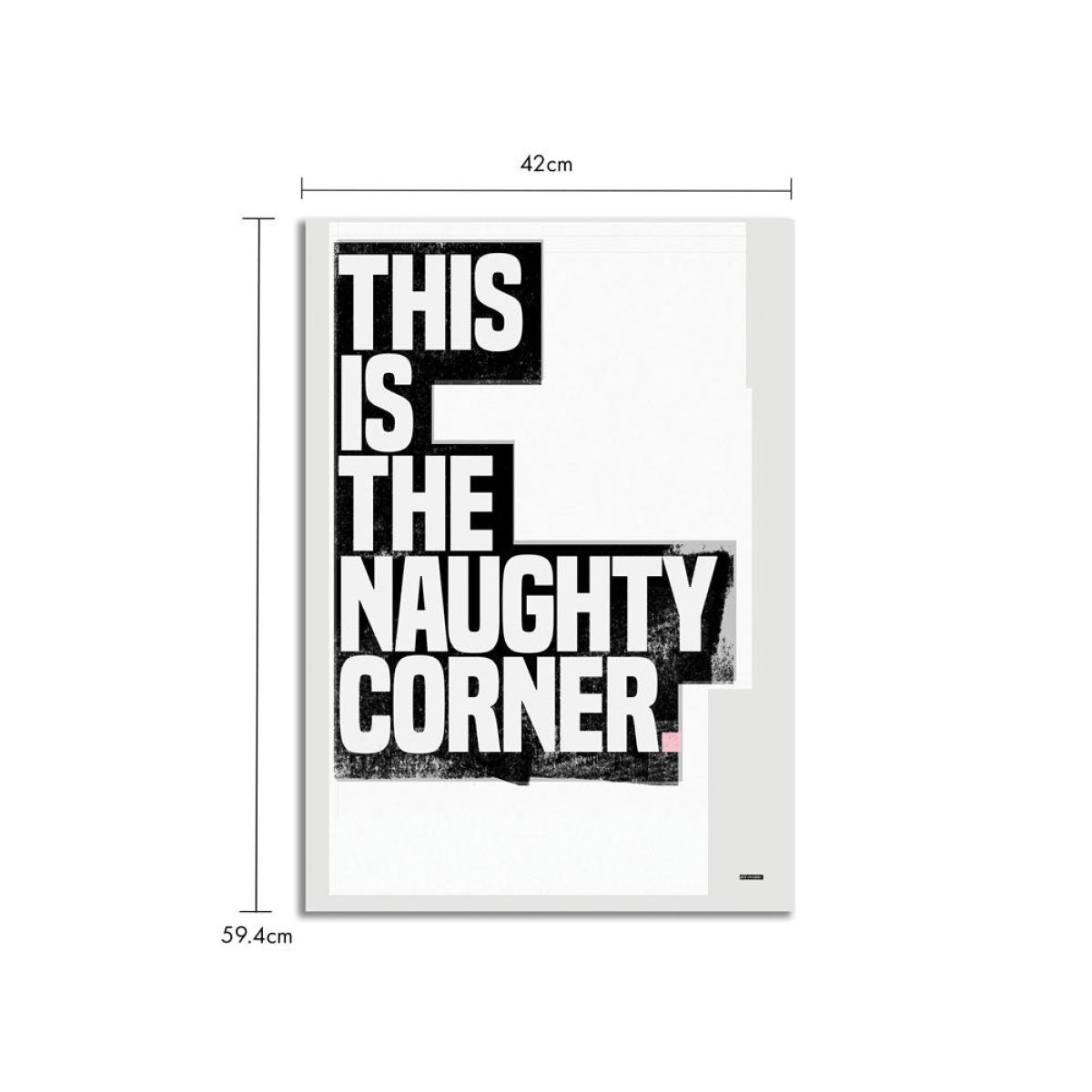 <!--td -- > Say hello to this cheeky and playful addition to your home, the This Is The Naughty Corner Monochrome Art Print. This quirky piece features bold white capital letters spelling out the ironic phrase, ‘This is the naughty corner’, perfectly contrasted against edgy black paint brush strokes. This design, which is designed designed by What Phil Sees, and is exclusive to Rockett St George, adds a modern, funky vibe while the full stop at the end brings a pop of fun colour in a beautiful baby pink, giving it a mischievous twist. Whether you’re looking to add a playful touch to your walls or liven up your décor, this print promises to combine humour and style and bring it right to your home! You’re welcome! - This Is The Naughty Corner Monochrome Art Print - Unframed - Measures: W42cm x H59.4cm, A2- Material: Printed on premium grade 210gsm matte paper using archival quality fade resistant inks- Designed by What Phil Sees, exclusive to Rockett St George. Signed by the artist