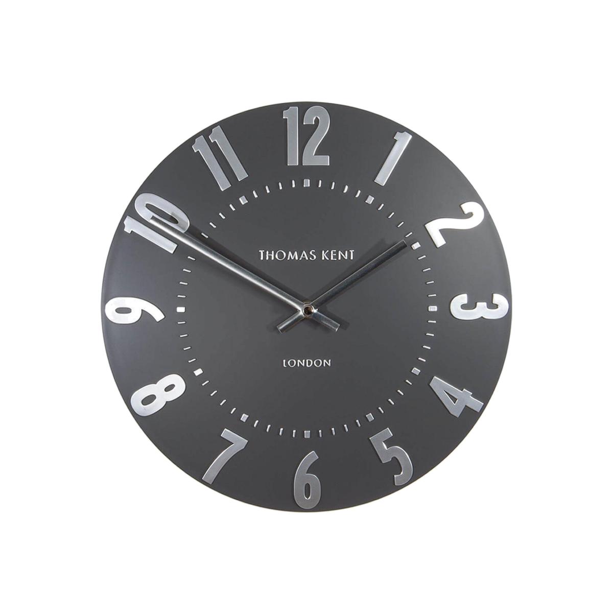 The glamourous sister of our classic open-faced Arabic, the 30cm Mulberry wall clock is another Thomas Kent longstanding bestseller. This year the trademark original muted tones have been joined by some more dramatic colours. Our new colour Graphite Silver makes the very best of those fantastic showstopping metallic numerals.