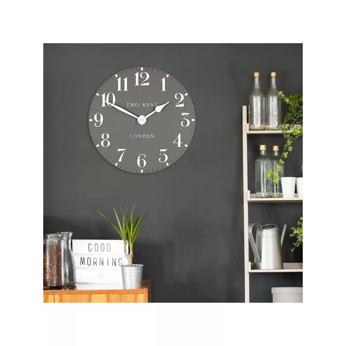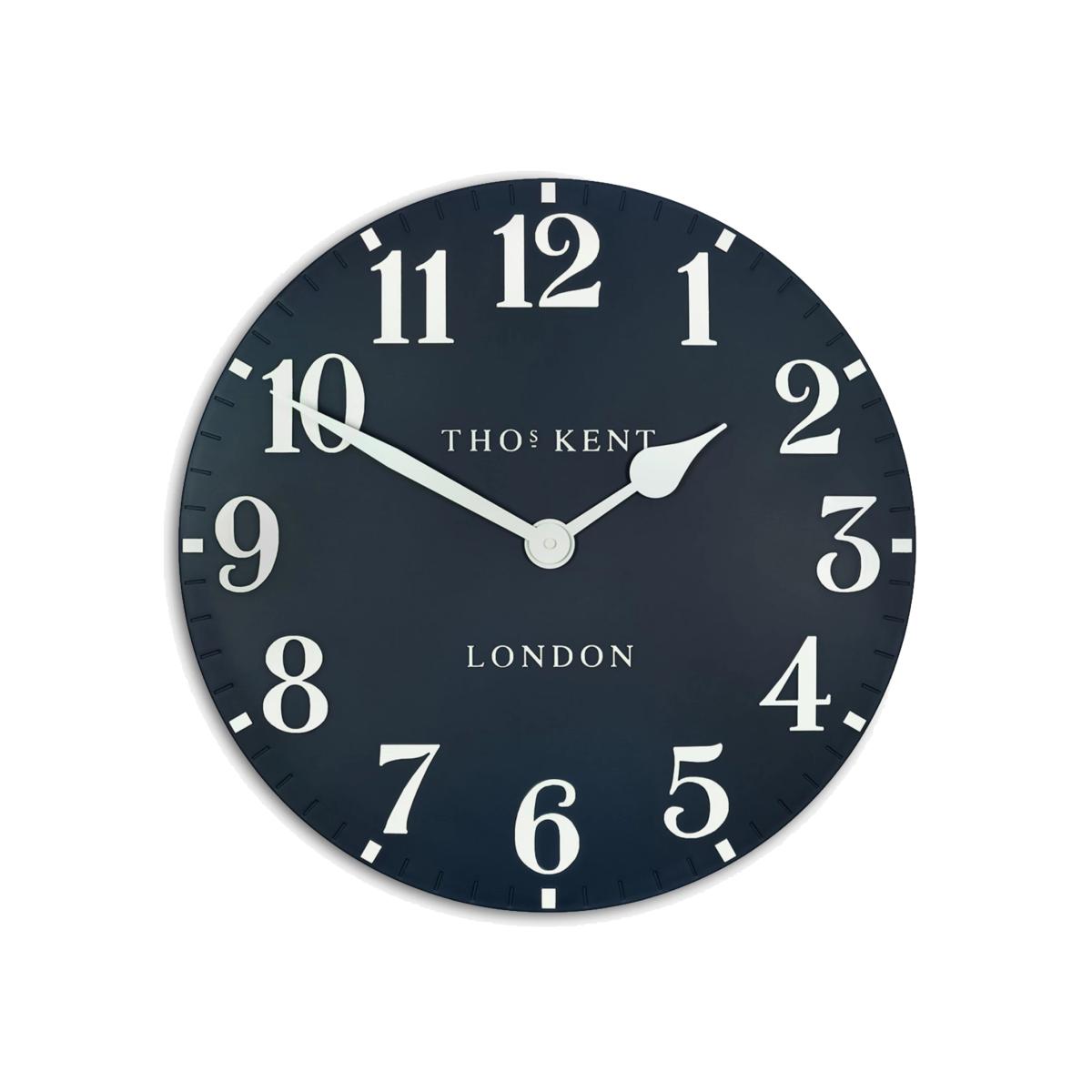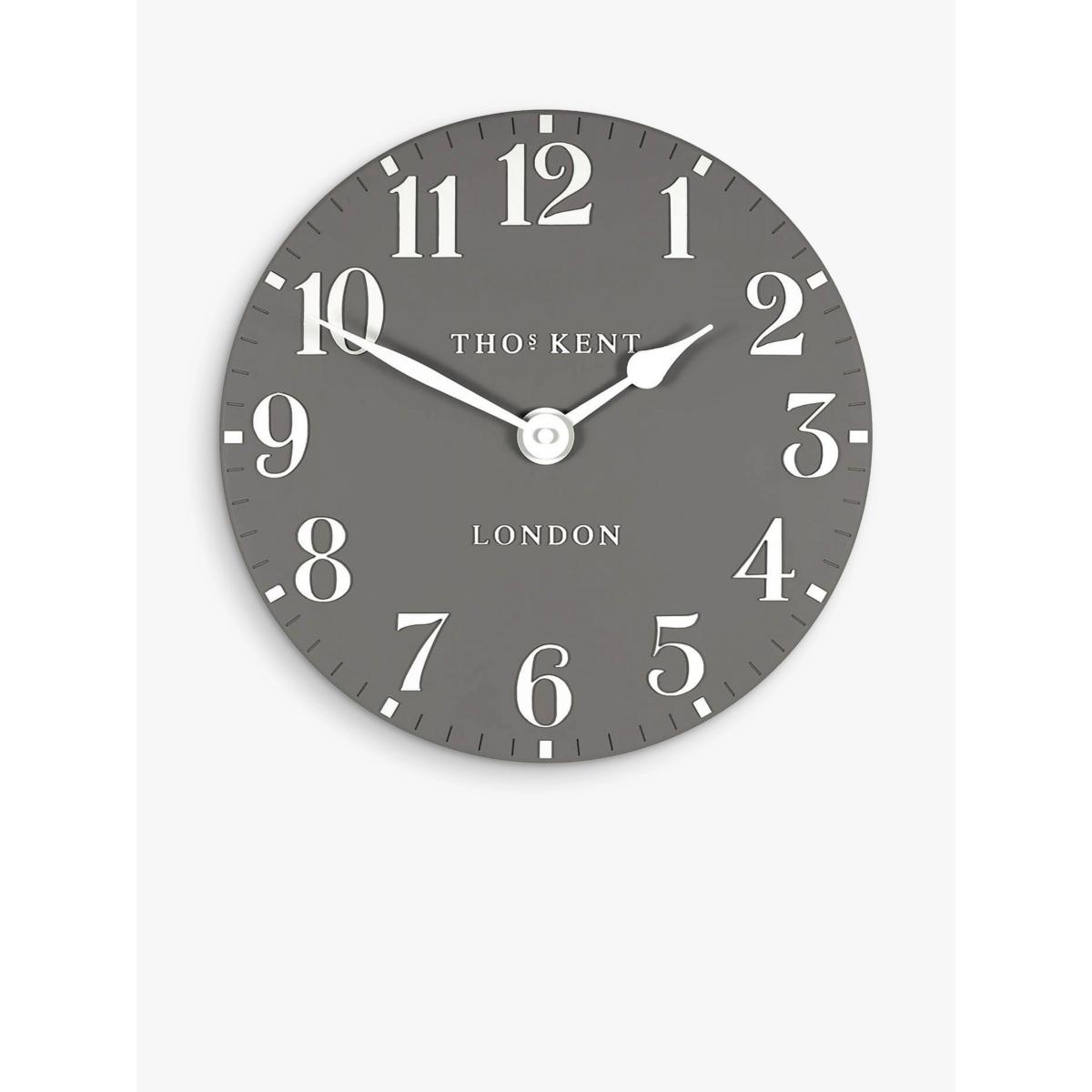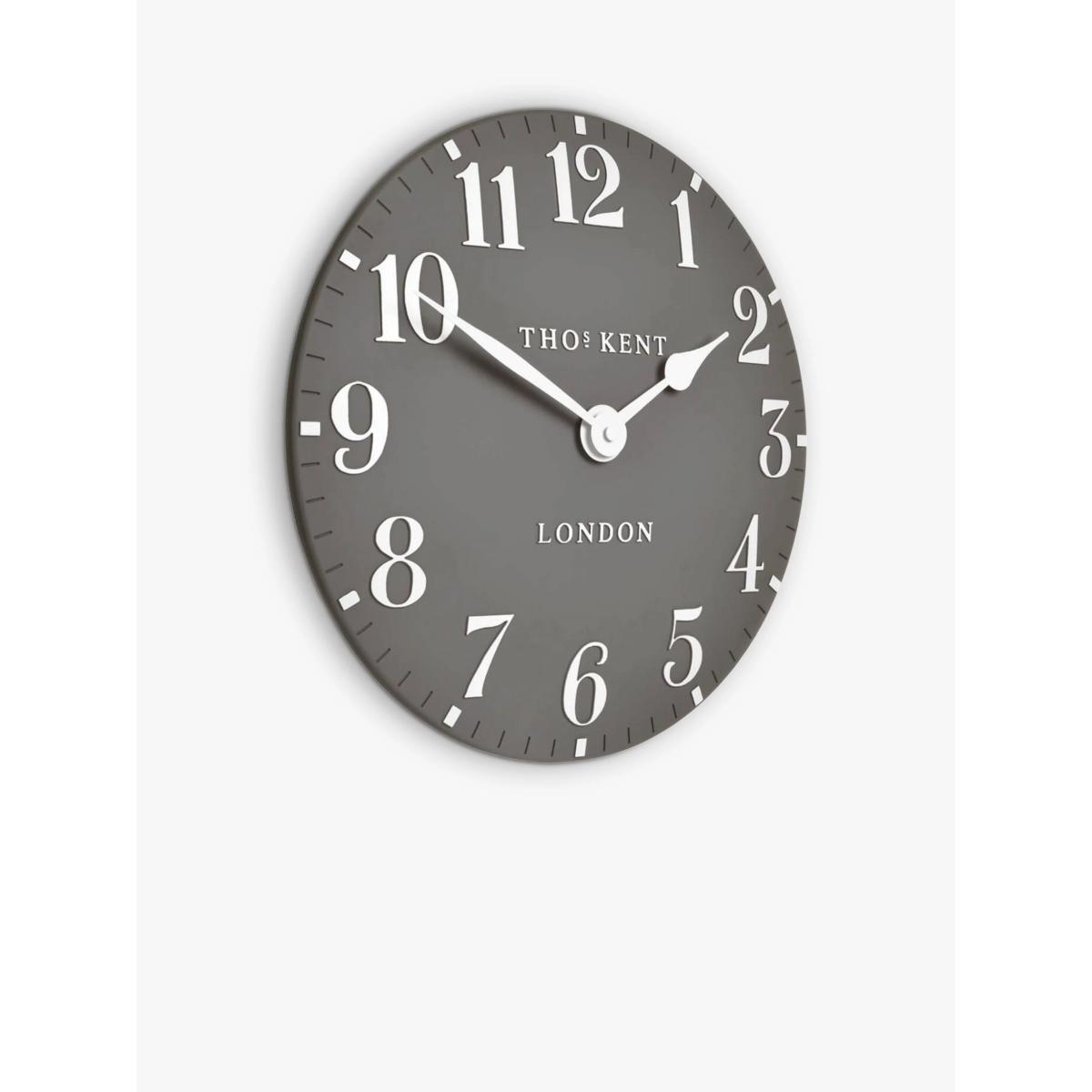 Thomas Kent's Arabic wall clock is a contemporary elegant design with a clock face in a choice of trend-led interior colours in a matt finish. Easily readable Arabic numerals contrast the clock face and match the clock hands.