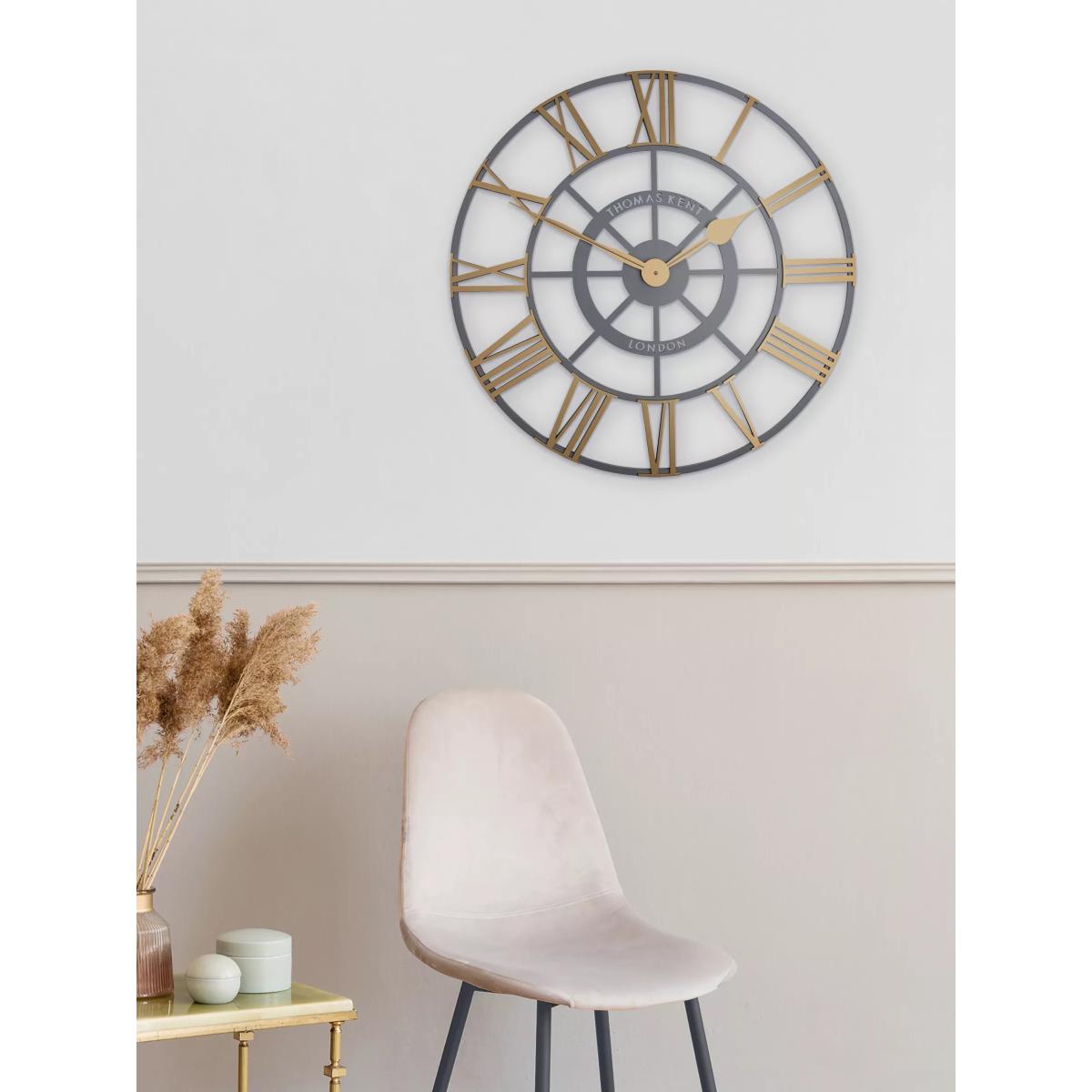 Inspired by early industrial design, Thomas Kent's Evening Star skeleton wall clock has traditional Roman numerals on glass panels, allowing your wall decor to show through. It's finished with contrasting clock hands.