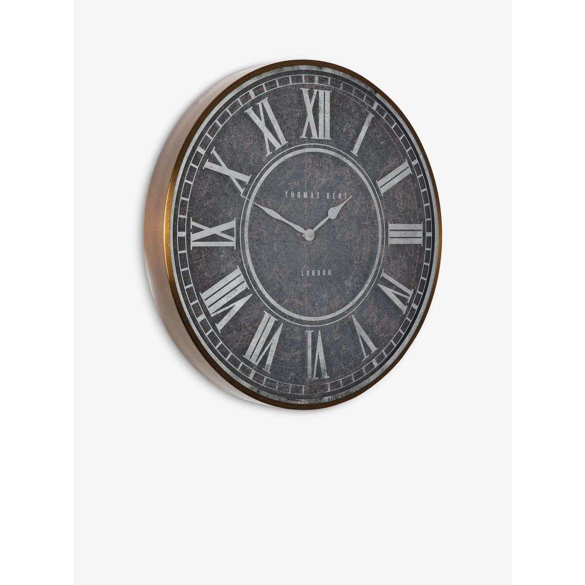 Thomas Kent's Flo Map wall clock has an ancient look to fit into a classic setting. The background has a faded map print, with slightly distressed Roman numerals adding to the olden feeling to the timepiece. Sizes available: 53cm diameter, 2kg 74cm diameter, 4kg