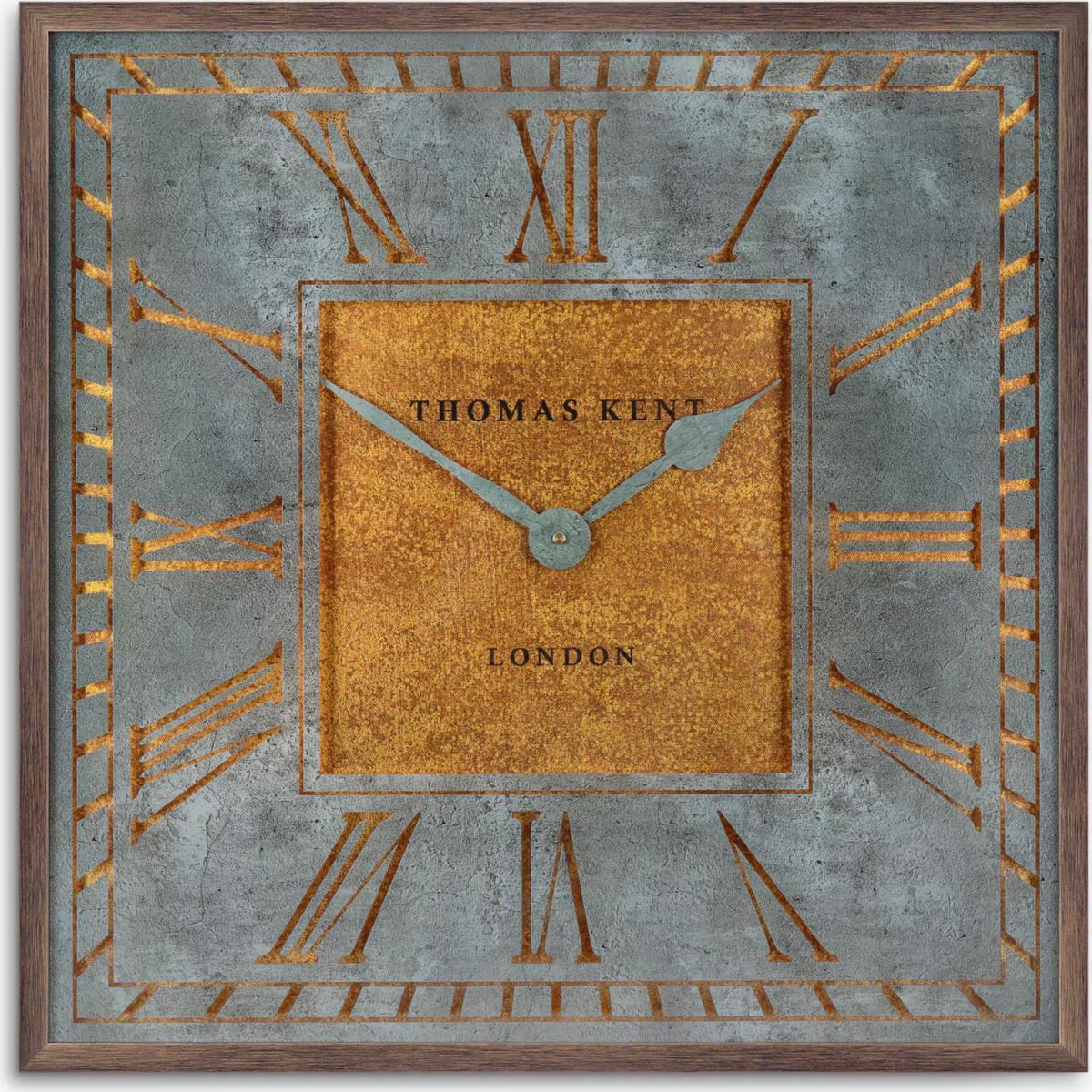 Square Florentine wall clock from Thomas Kent inspired by one of the oldest mechanical timepieces that is still in operation in the Duomo, Florence. The oversized wall clock takes a striking stone-patterned design and applies a distressed antique effect onto a glass casing. Using a shade of aged copper, the powerful green is projected onto the foreground. The impressive finish is set against a mottled gold face that radiates through the traditional Roman numerals. A solid wood-effect copper frame completes the design. The Thomas Kent Florentine Star wall clock has a distressed finish, achieved by printing a stone effect onto glass and layering this over an antiqued clock face. The metallic rim completes the overall industrial feel with Roman numerals keeping it traditional. Choose a size and colour to suit your wall.