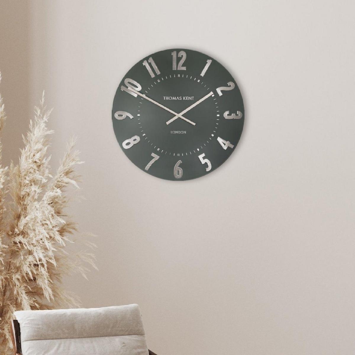 Thomas Kent Mulberry 20-inch wall clock, featuring a round, modern design with foiled metallic Arabic numerals and hands against an olive backdrop. The Thomas Kent Mulberry wall clock is packed full of character, adding a splash of colour and a touch of the dramatic to any modern home. Featuring an on-trend design, this classic clock showcases foiled metallic numerals that stand out beautifully against an earthy green backdrop. The open-faced, curvaceous styling is both versatile and sophisticated, making it a perfect fit for a variety of interior styles. Whether displayed in a living room, kitchen or bedroom, the Thomas Kent wall clock is more than a timepiece—it’s a statement of style and charm. Thomas Kent Mulberry 20-inch wall clock, featuring a round, modern design with foiled metallic Arabic numerals and hands against an olive backdrop. The Thomas Kent Mulberry wall clock is packed full of character, adding a splash of colour and a touch of the dramatic to any modern home. Featuring an on-trend design, this classic clock showcases foiled metallic numerals that stand out beautifully against an earthy green backdrop. The open-faced, curvaceous styling is both versatile and sophisticated, making it a perfect fit for a variety of interior styles. Whether displayed in a living room, kitchen or bedroom, the Thomas Kent wall clock is more than a timepiece—it’s a statement of style and charm.
