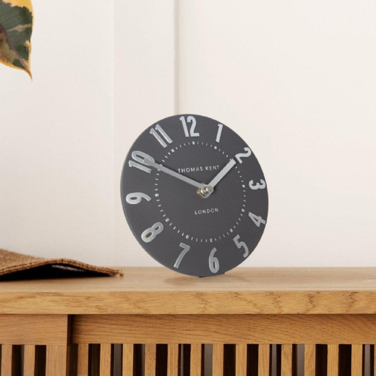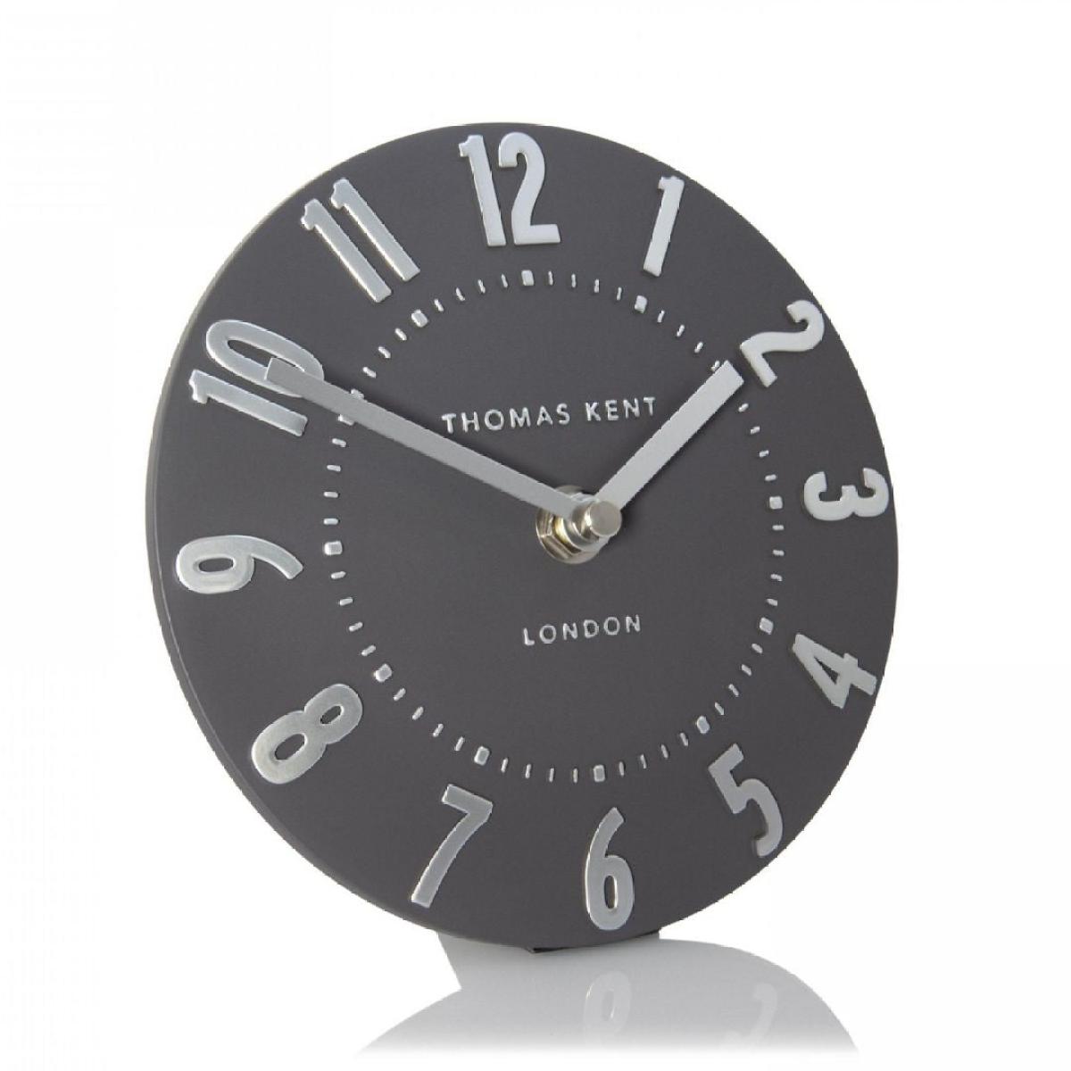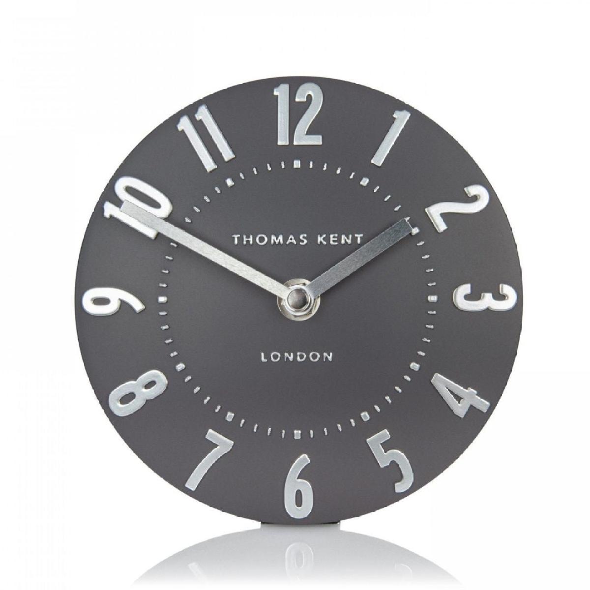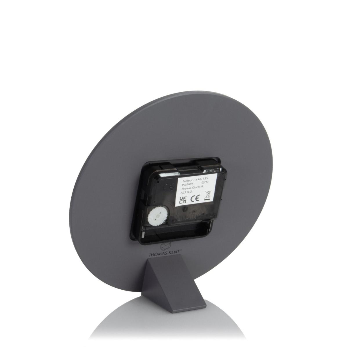 Thomas Kent Mulberry 6-inch mantel clock, featuring a round, modern design with foiled metallic Arabic numerals and hands against a solid grey backdrop. The Thomas Kent mantel clock is packed full of character - a simple accessory for a modern home. Featuring an on-trend design, this classic clock showcases foiled metallic numerals that stand out beautifully against a solid grey backdrop. The open-faced, curvaceous styling is both versatile and sophisticated, making it a perfect fit for a variety of interior styles. Ideal for mantelpieces, desks or side tables, this compact clock not only keeps you on time but also adds a touch of refined decor to your space. Thomas Kent Mulberry 6-inch mantel clock, featuring a round, modern design with foiled metallic Arabic numerals and hands against a solid grey backdrop. The Thomas Kent mantel clock is packed full of character - a simple accessory for a modern home. Featuring an on-trend design, this classic clock showcases foiled metallic numerals that stand out beautifully against a solid grey backdrop. The open-faced, curvaceous styling is both versatile and sophisticated, making it a perfect fit for a variety of interior styles. Ideal for mantelpieces, desks or side tables, this compact clock not only keeps you on time but also adds a touch of refined decor to your space.