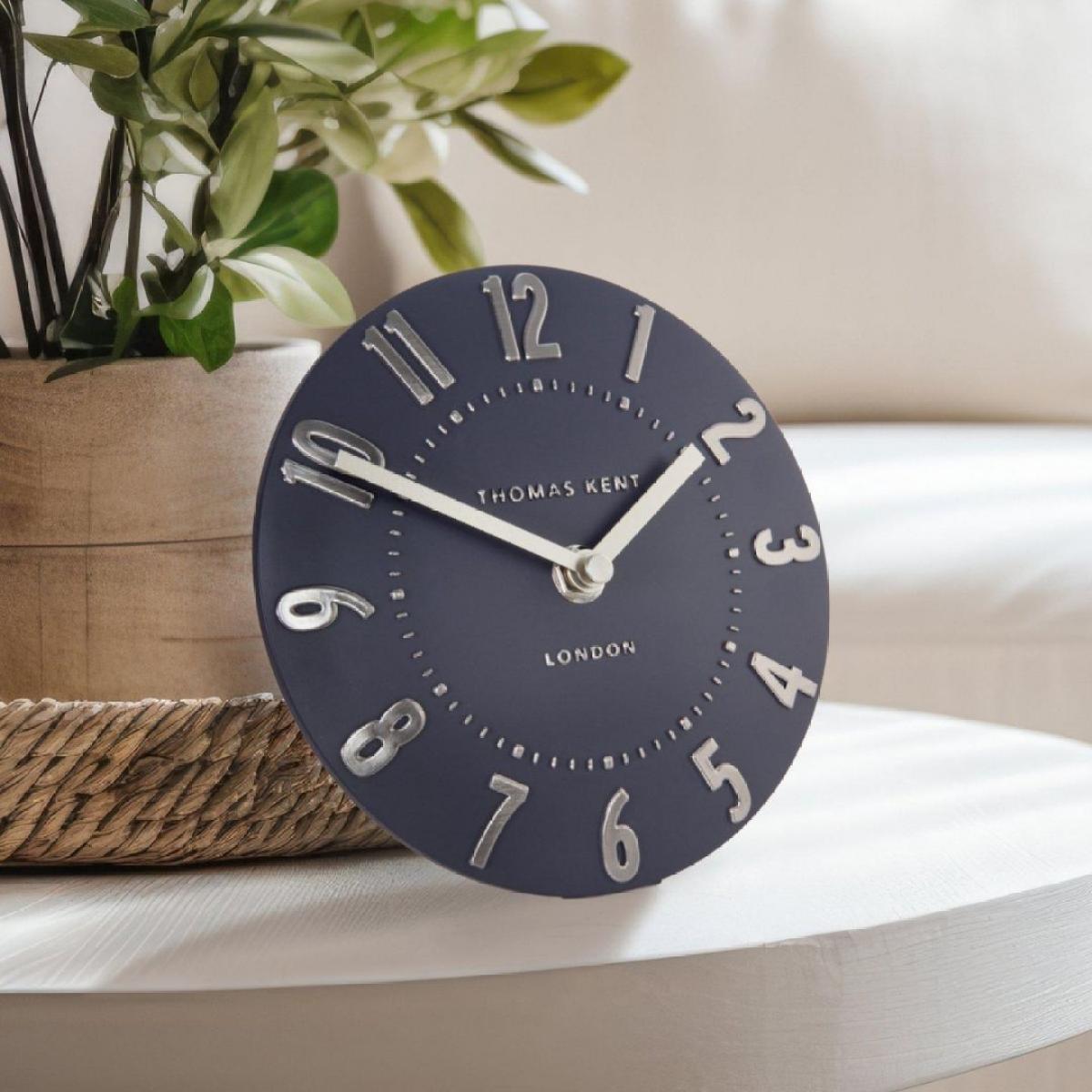 Thomas Kent Mulberry 6-inch mantel clock, featuring a round, modern design with foiled metallic Arabic numerals and hands against a rich blue backdrop. The Thomas Kent mantel clock is packed full of character - a simple accessory for a modern home. Featuring an on-trend design, this classic clock showcases foiled metallic numerals that stand out beautifully against a rich blue backdrop. The open-faced, curvaceous styling is both versatile and sophisticated, making it a perfect fit for a variety of interior styles. Ideal for mantelpieces, desks or side tables, this compact clock not only keeps you on time but also adds a touch of refined decor to your space. Thomas Kent Mulberry 6-inch mantel clock, featuring a round, modern design with foiled metallic Arabic numerals and hands against a rich blue backdrop. The Thomas Kent mantel clock is packed full of character - a simple accessory for a modern home. Featuring an on-trend design, this classic clock showcases foiled metallic numerals that stand out beautifully against a rich blue backdrop. The open-faced, curvaceous styling is both versatile and sophisticated, making it a perfect fit for a variety of interior styles. Ideal for mantelpieces, desks or side tables, this compact clock not only keeps you on time but also adds a touch of refined decor to your space.