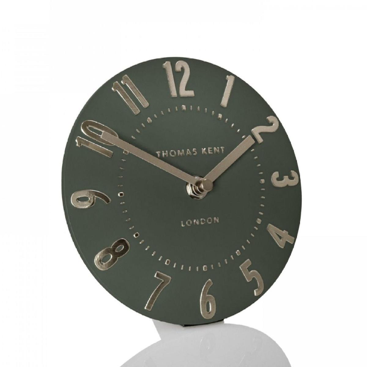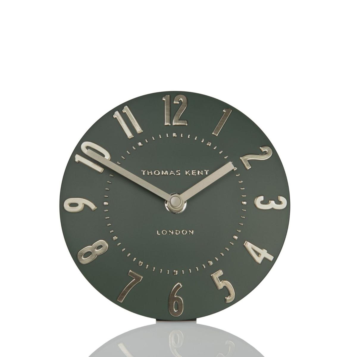 Thomas Kent Mulberry 6-inch mantel clock, featuring a round, modern design with foiled metallic Arabic numerals and hands against an olive green backdrop. The Thomas Kent mantel clock is packed full of character - a simple accessory for a modern home. Featuring an on-trend design, this classic clock showcases foiled metallic numerals that stand out beautifully against a subtle olive green backdrop. The open-faced, curvacious styling is both versatile and sophisticated, making it a perfect fit for a variety of interior styles. Ideal for mantelpieces, desks or side tables, this compact clock not only keeps you on time but also adds a touch of refined decor to your space. Thomas Kent Mulberry 6-inch mantel clock, featuring a round, modern design with foiled metallic Arabic numerals and hands against an olive green backdrop. The Thomas Kent mantel clock is packed full of character - a simple accessory for a modern home. Featuring an on-trend design, this classic clock showcases foiled metallic numerals that stand out beautifully against a subtle olive green backdrop. The open-faced, curvacious styling is both versatile and sophisticated, making it a perfect fit for a variety of interior styles. Ideal for mantelpieces, desks or side tables, this compact clock not only keeps you on time but also adds a touch of refined decor to your space.