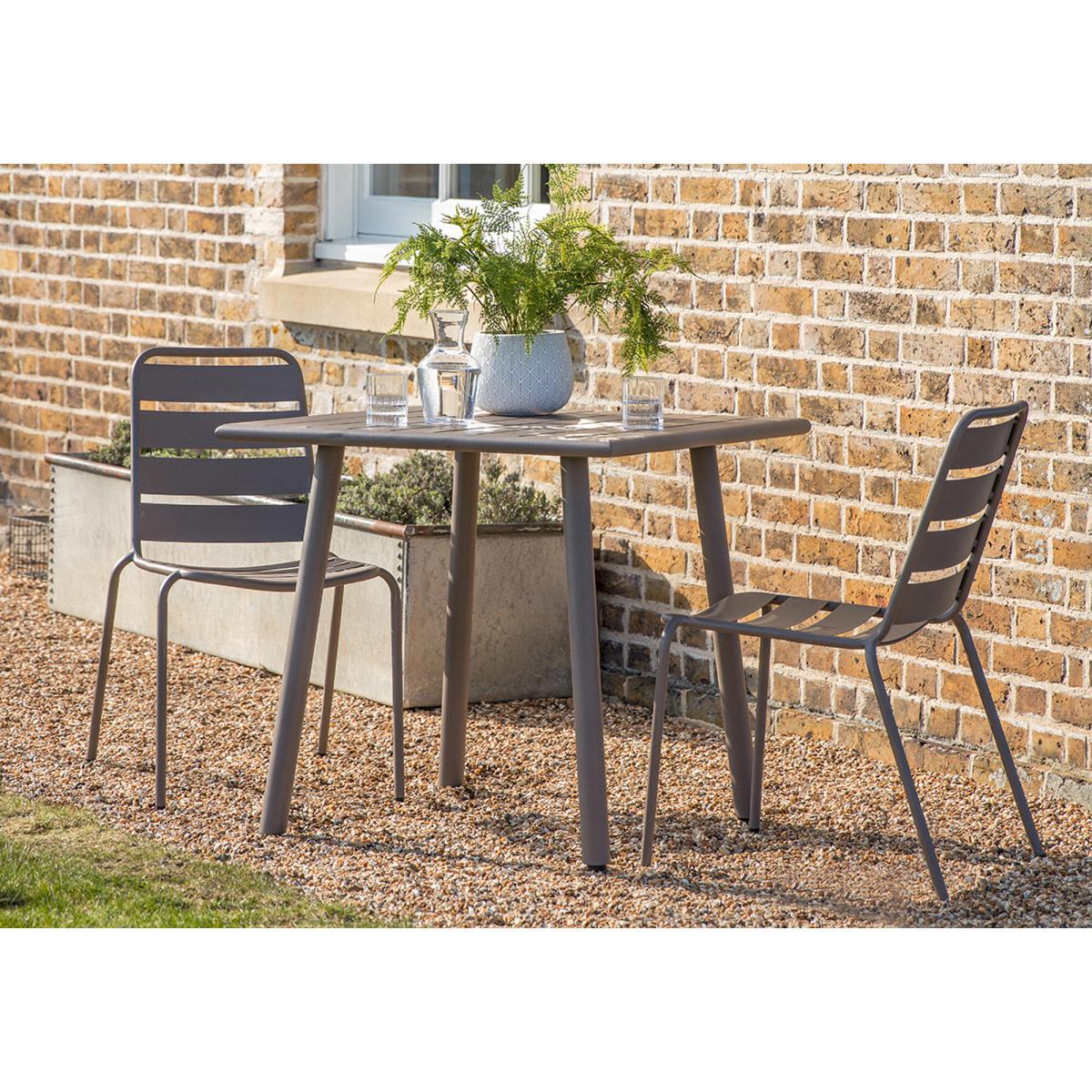 The Thompson range offers a simple yet sleek aesthetic for outdoor living. Clean horizontal panels are upheld tidily by tubular steel legs. Structured and clean, the Thompson Outdoor Steel Chair is extremely versatile, slipping neatly into a variety of outdoor landscapes and painted in a warm grey for a softer, more mellow appearance. Complete the look by pairing with either of the Thompson Outdoor Tables.