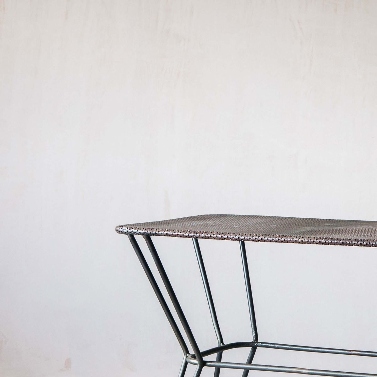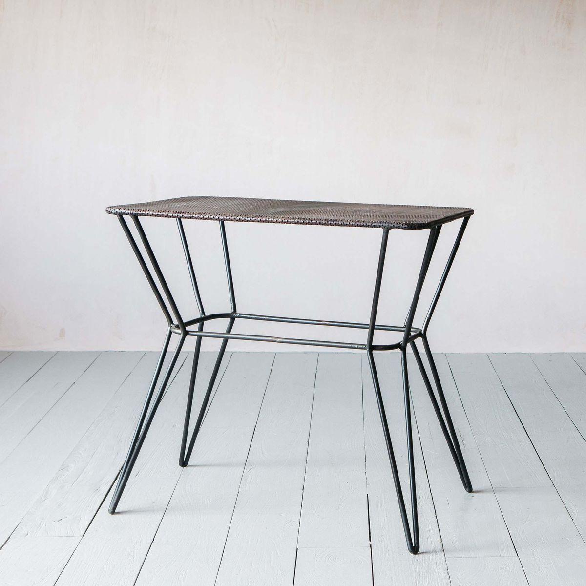 Industrial-inspired with a functional mesh top and sleek metal legs, our Thoren side table creates a vintage aesthetic, with distressed details and an abraded finish.