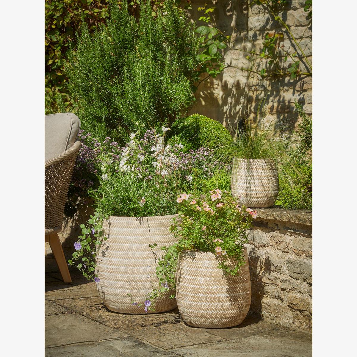 Crafted from fibre clay, this set of planters adds the perfect finishing touch to your garden. With their delicate chevron detailing, these outdoor pots come in a set of three, making them ideal for layering in your garden and adding some beautiful planting to your outdoor space.