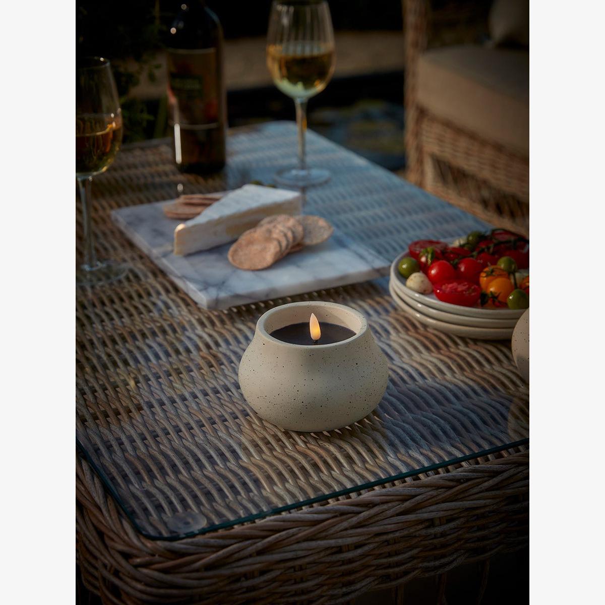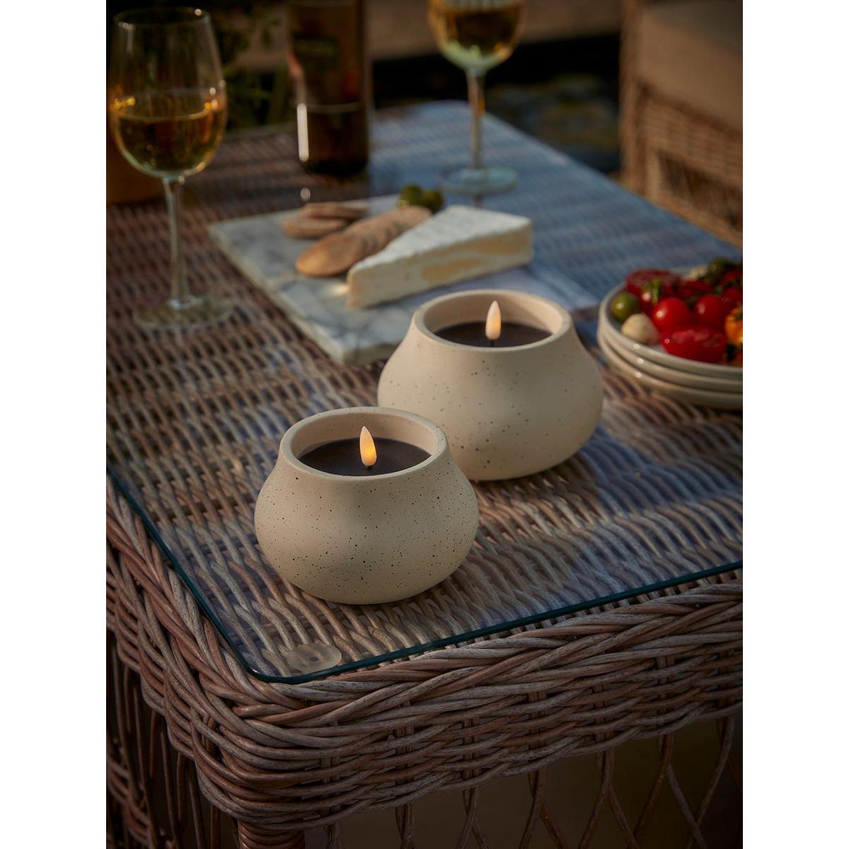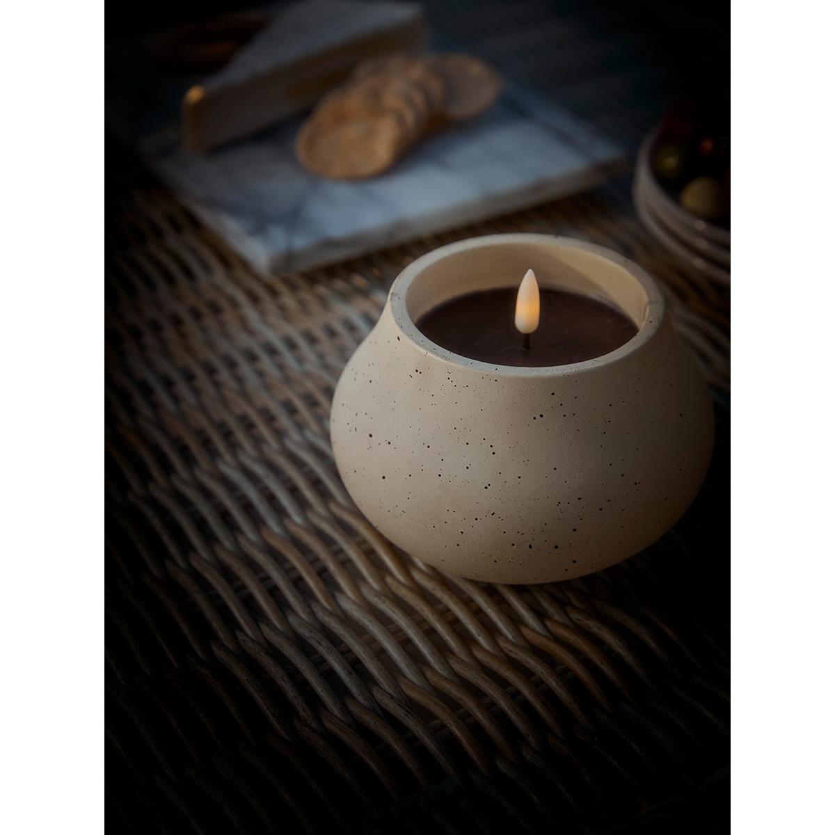 Add some ambience and a warm glow to your outdoor dining space with our concrete LED candles. In simple ceramic pots, the dark wax glows beautifully against the convincing flickering flame effect for a natural and atmospheric glow. Also available in large.
