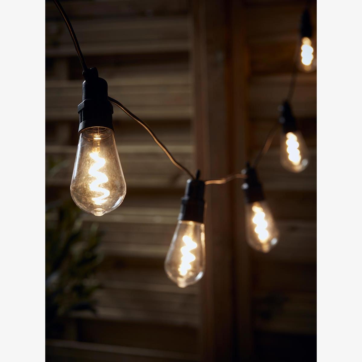 Light your garden with the gentle glow of our Three Connectable Festoon Bulb Lights. With the ability to connect three sets, these lights are perfect for placing around your entire space to light each and every corner of your garden and add a welcoming ambience to your space, perfect for an evening tipple with friends and family,Hung on black wire with black fixtures, the glass bulbs in a traditional shape show the swirled filament for a modern twist on a vintage style.