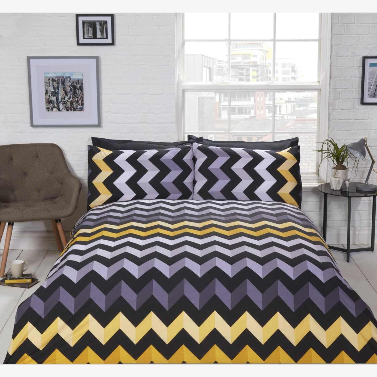This duvet set is a striking choice for adding a contemporary edge to any bedroom. I love the bold zigzag pattern in ochre, black, and grey-it’s versatile enough to complement minimalist, Scandinavian, or eclectic schemes. It works particularly well in modern or industrial interiors where clean lines and a pop of colour are welcome. A practical styling tip would be to pair it with neutral or muted bedside accessories and cushions to let the pattern stand out, or mix with textured throws for a layered look. Its reversible design offers flexibility, making it easy to switch up styles or refresh the room without a full redo. Overall, a smart, functional choice that adds visual interest while remaining easy to incorporate into different interior styles.