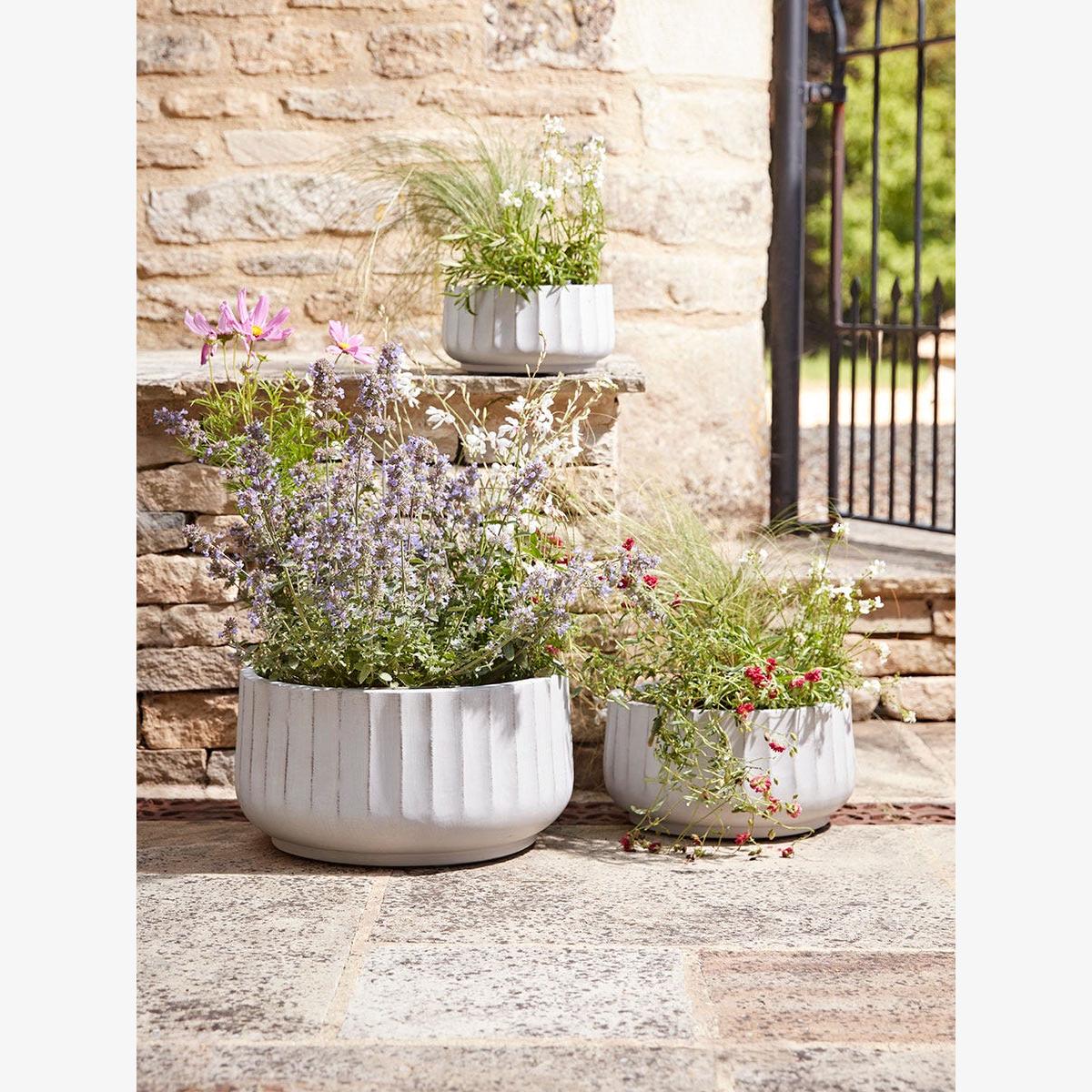 Brighten up the corners of your garden with our set of three Dove Grey Fluted Planters. Delicately crafted, these planters have a fluted design in a soft dove grey, creating a calming and relaxing atmosphere where they are placed. In three sizes, these planters are perfect for creating a layered look in your garden and adding beautiful splashes of floral colour.