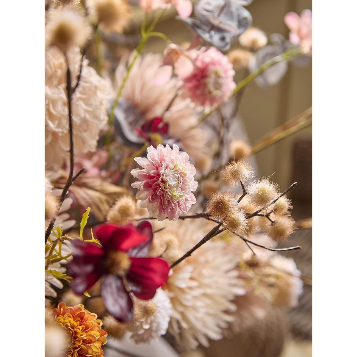 I love these faux dahlia sprays for their rich, rust-coloured tones that bring warmth and depth to a variety of interior styles. They work particularly well in rustic, vintage, or boho settings where natural and earthy palettes are key. Practical styling tips include grouping them in a simple vase for an understated look, or combining them with other faux florals for a more curated arrangement. Since they’re artificial, they’re a great option for adding colour to spaces that don’t get much natural light or for long-lasting displays that require minimal maintenance. They’re versatile enough to sit on a sideboard, window sill, or countertop, making them a handy decorative detail that feels both stylish and practical.