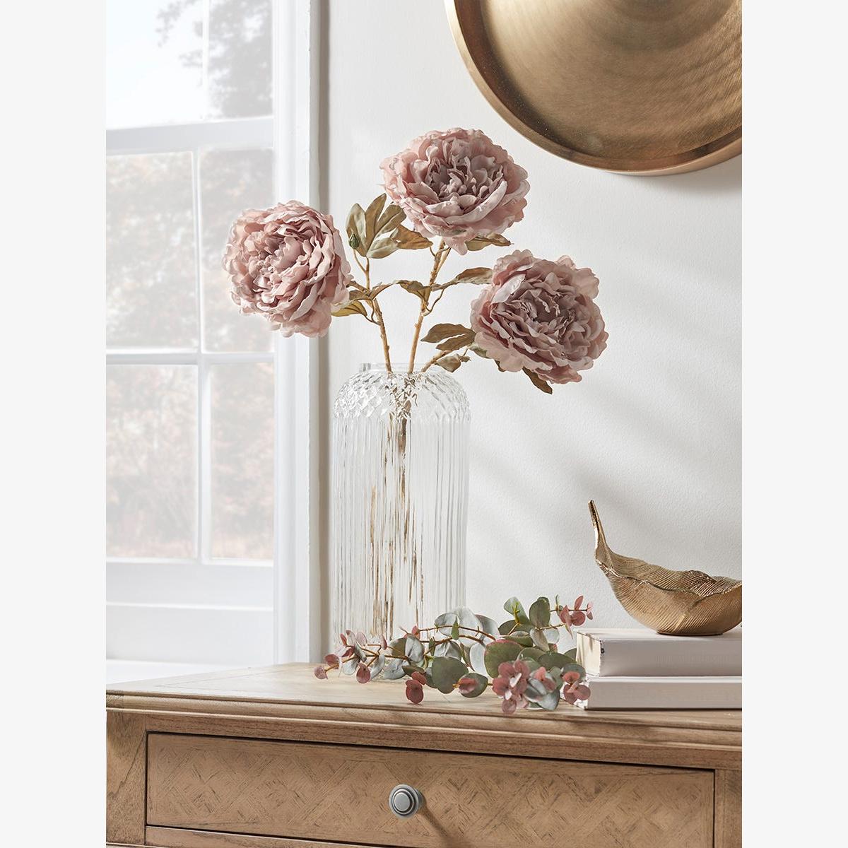 Add some welcome colour to your space with our delightfully feminine faux peony stems. In full bloom, the remarkably realistic petals offer the softest of blush tones, paired with stems and leaves of gentle sage. Pair with an elegant tall vase for a rejuvenating update.