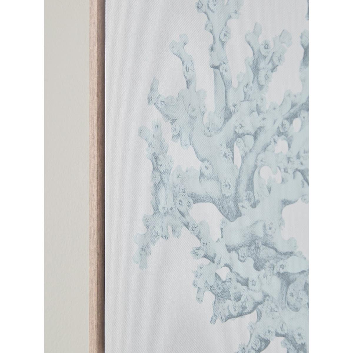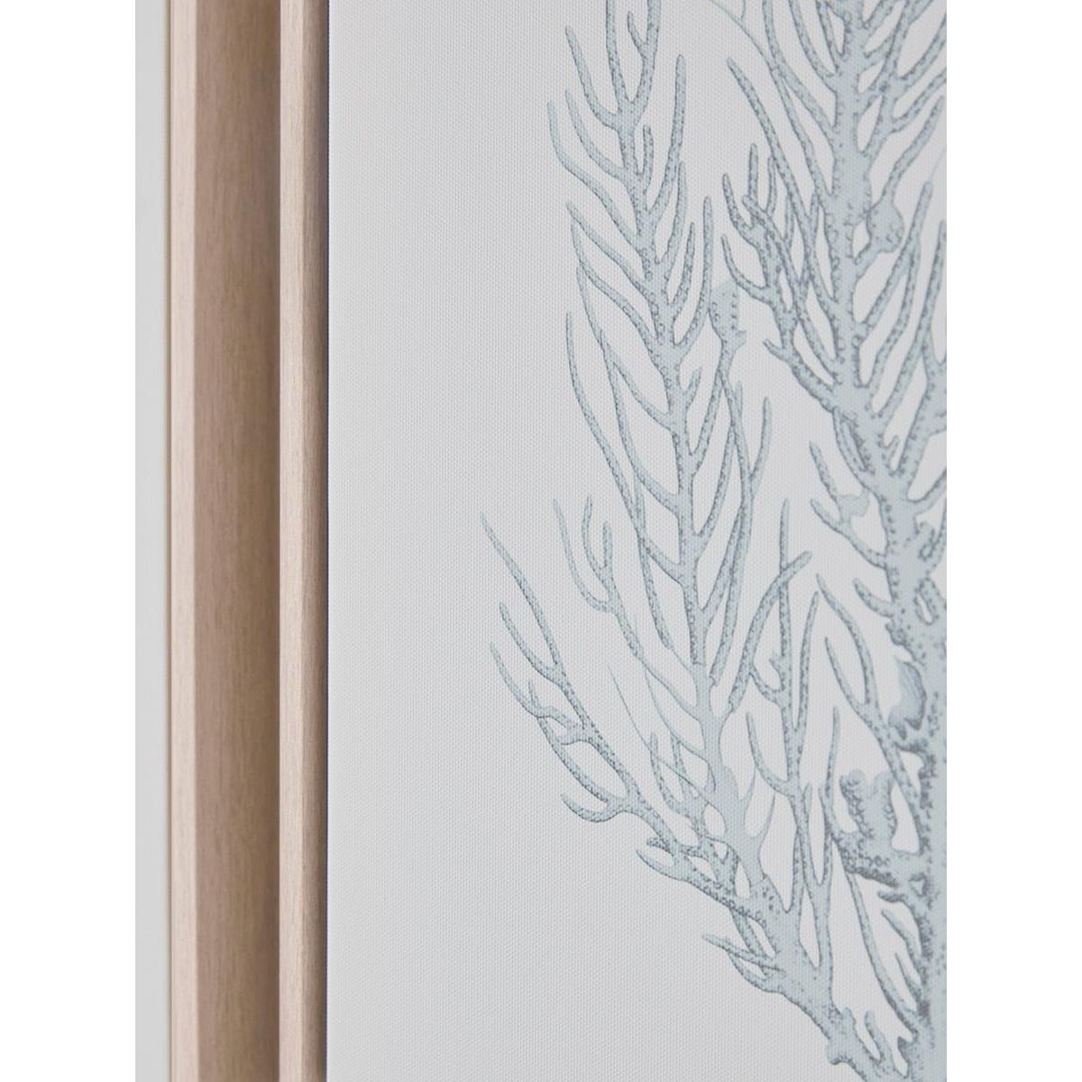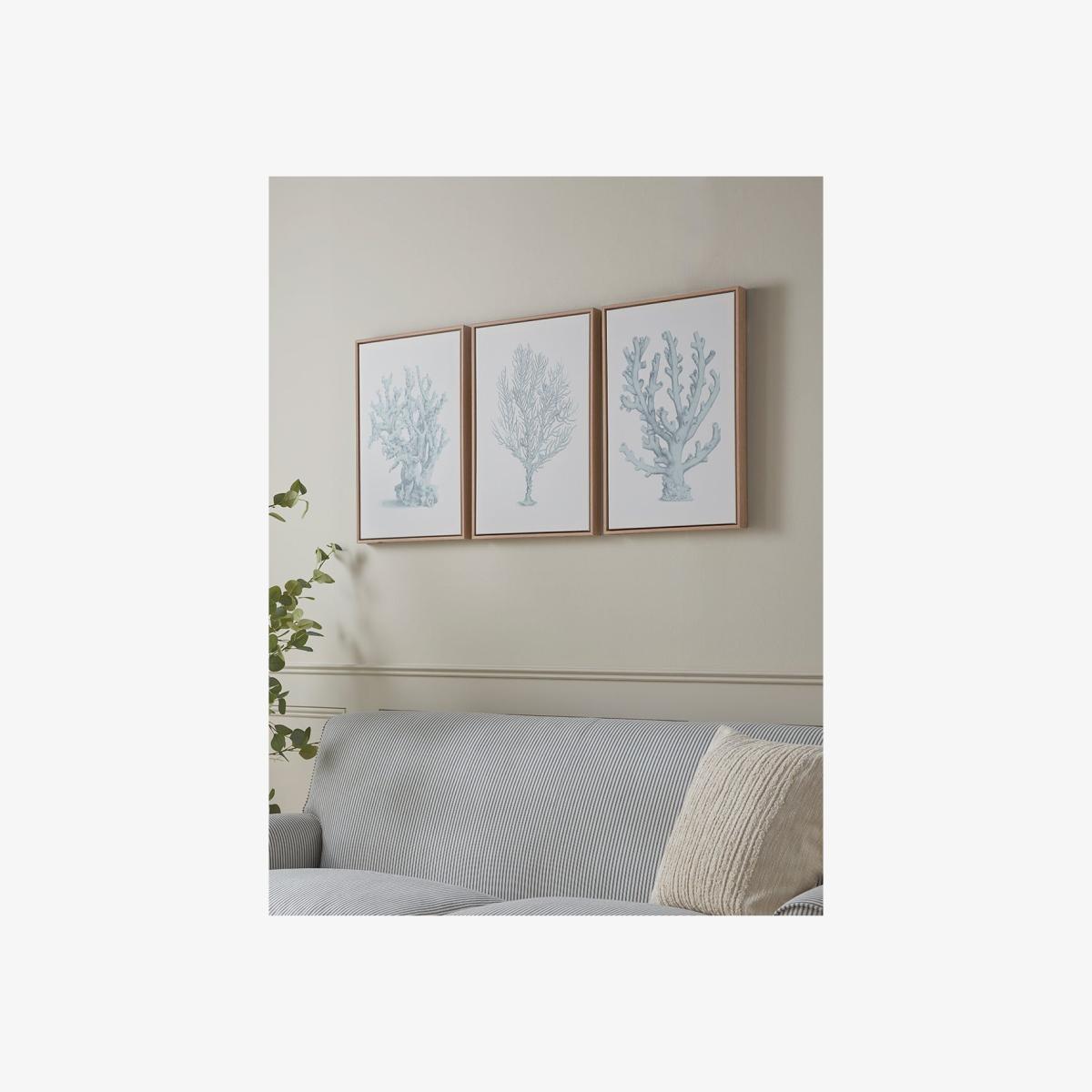 Set in floating wooden frames for a more polished contemporary look, this set of canvases features three different depictions of sea coral in muted, washy green tones. Perfect for adding soothing character to a coastal-themed space.