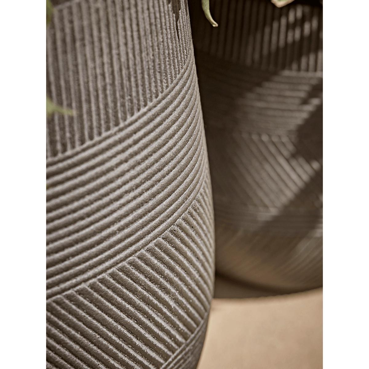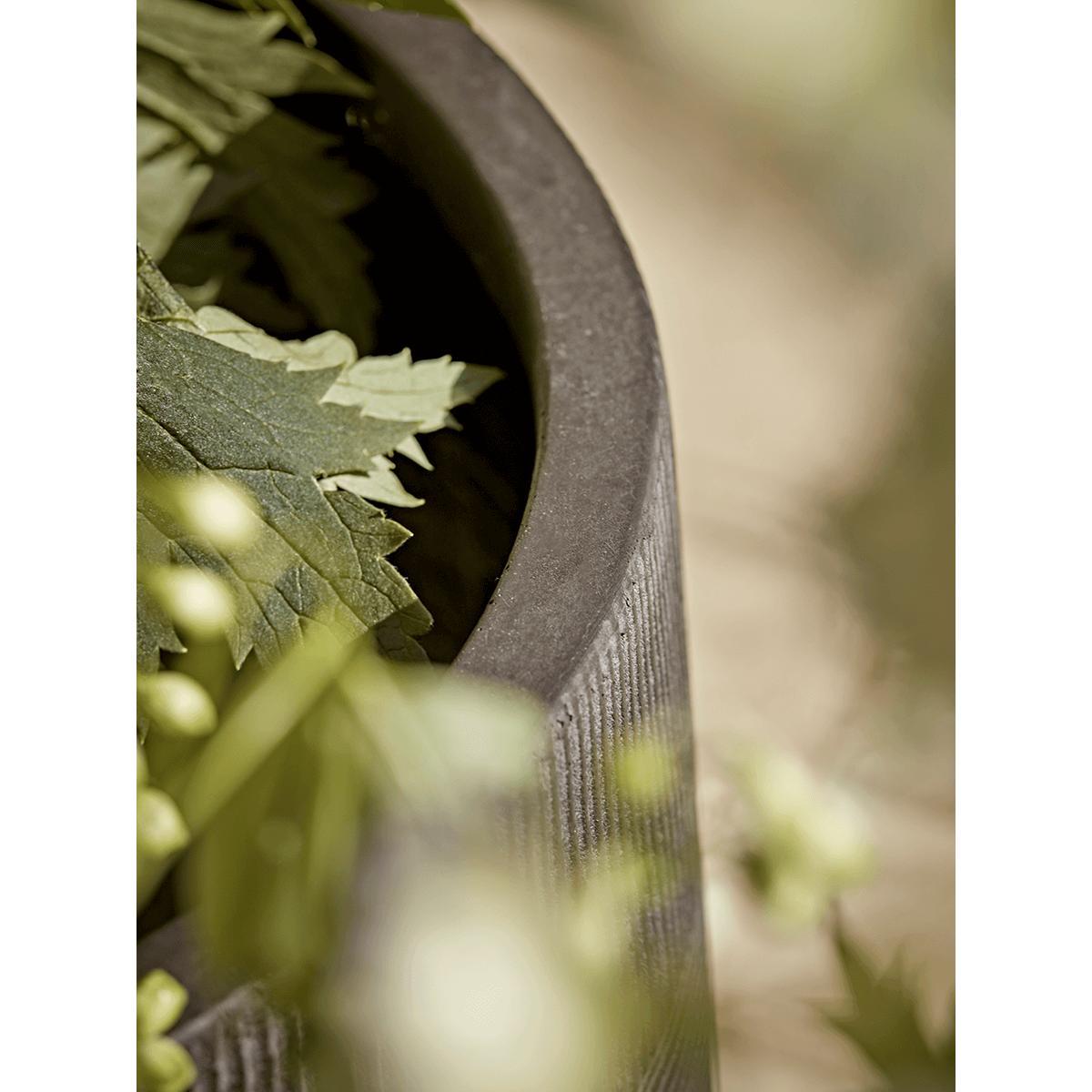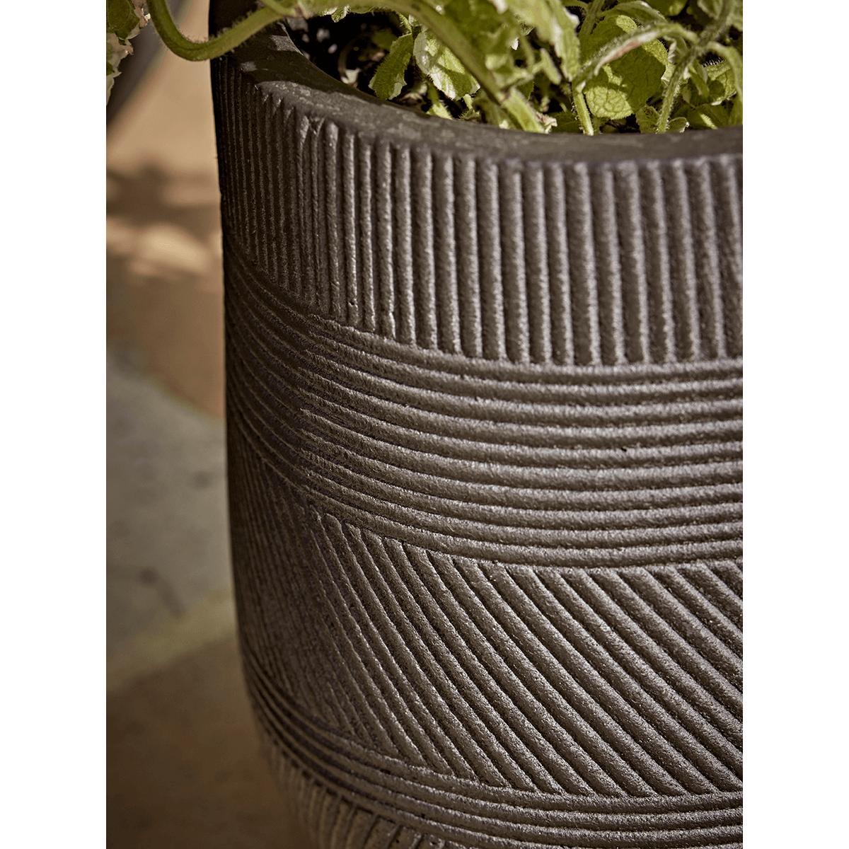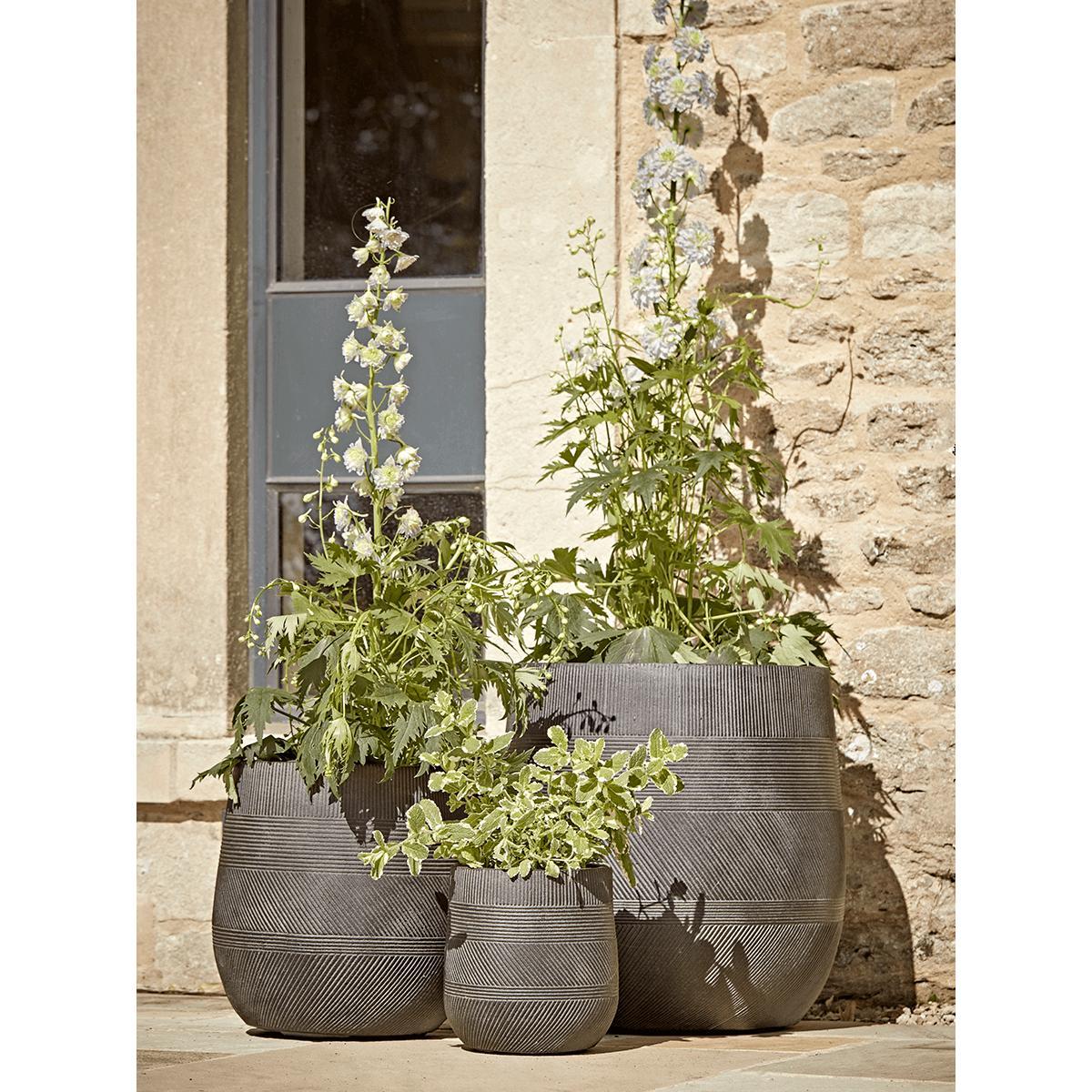 Crafted from durable clay in dark grey, with an etched geometric pattern to the surface, our set of three planters makes a stylish alternative to traditional terracotta pots. Each set contains one small, one medium and one large planter, which can be positioned together or apart to suit your garden design. Also available in. Light grey.