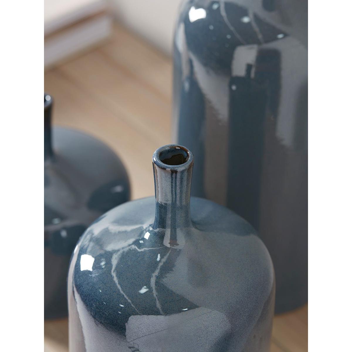 I love how the three glazed vases give a versatile, contemporary touch with their soothing blue tones. They work particularly well in Scandinavian or minimalist interiors, where their clean lines and subtle colour can add a calming focal point. For styling, I recommend pairing them with fresh or dried botanicals to bring life to your space, or simply displaying them alone for a modern, sculptural effect. They are also great for grouping together on a sideboard or shelf to create visual interest through their varying heights and shapes. Just be mindful of proportion-these vases are perfect for smaller floral arrangements or even as standalone decorative accents.