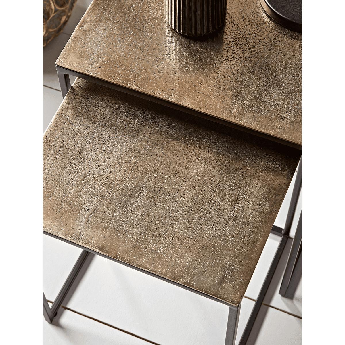 Three Gold Textured Nesting Tables - Square