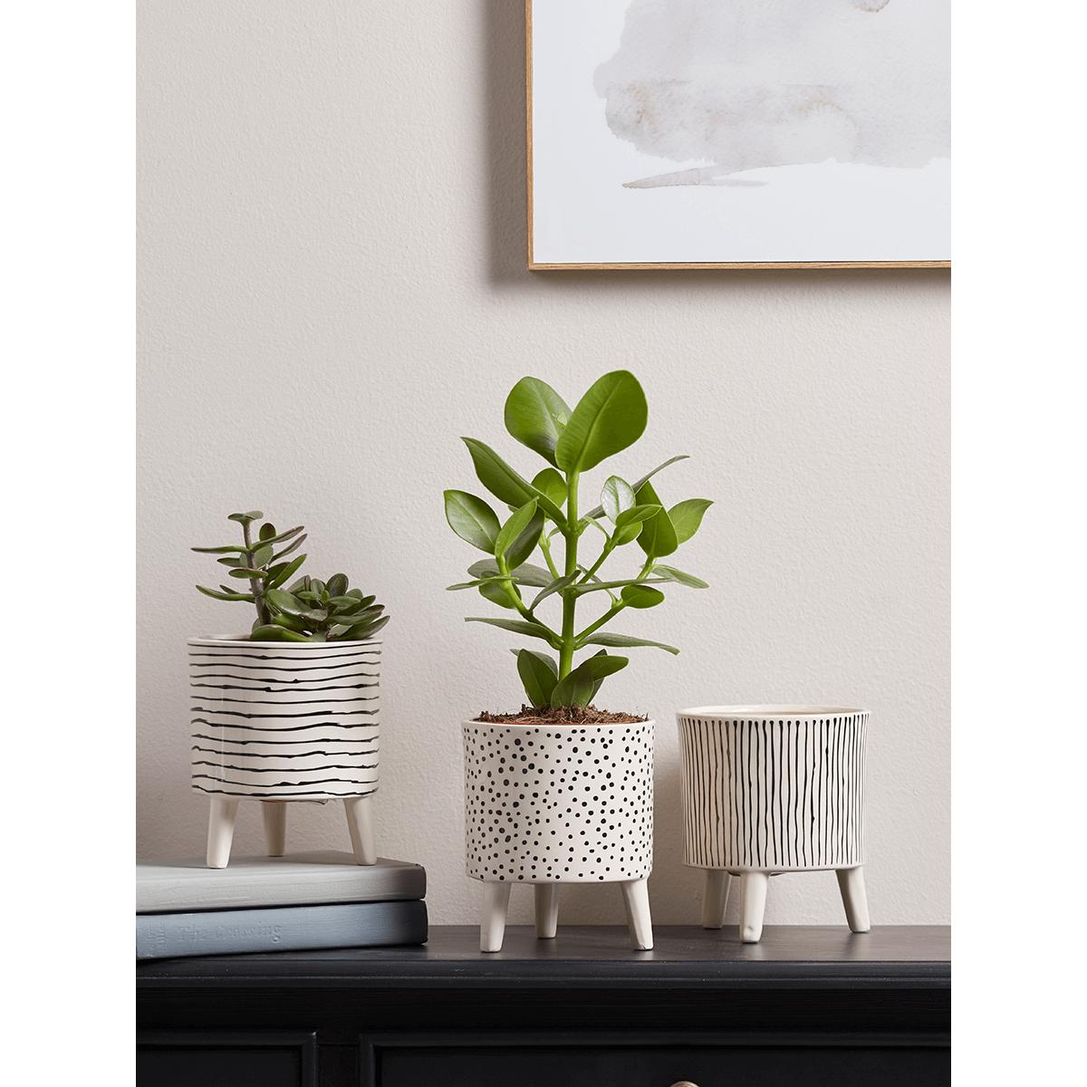 Our set of three monochrome dolomite planters are the perfect home for your favourite house plant, succulent or cactus. Style as a trio and create a playful display, or position in different areas of the home of a complementing scheme.