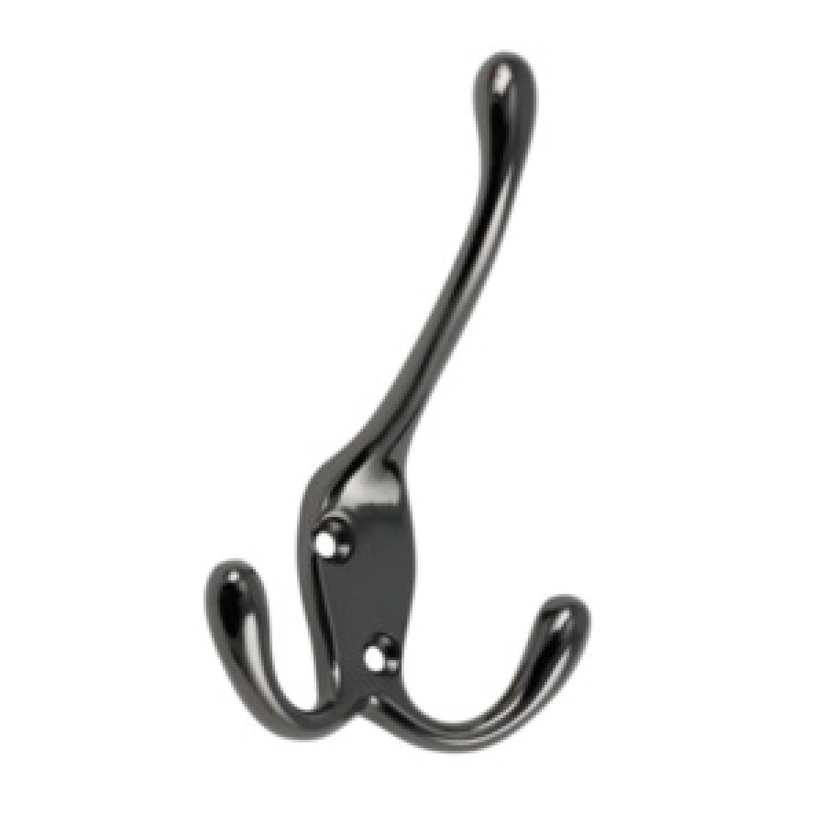 Sophisticated and stylish this Three Prong Black Nickel Coat Hook allows you create a tidier, organised home or office space. With its three prongs it's the ultimate coat hook, allowing you to hang up to three medium to heavy items in one simple step. In a variety of colours this hook will match perfectly with darker wallpapers and colours. Use in bedrooms behind doors or as extra storage, and the glossy finish creates a luxurious feel.