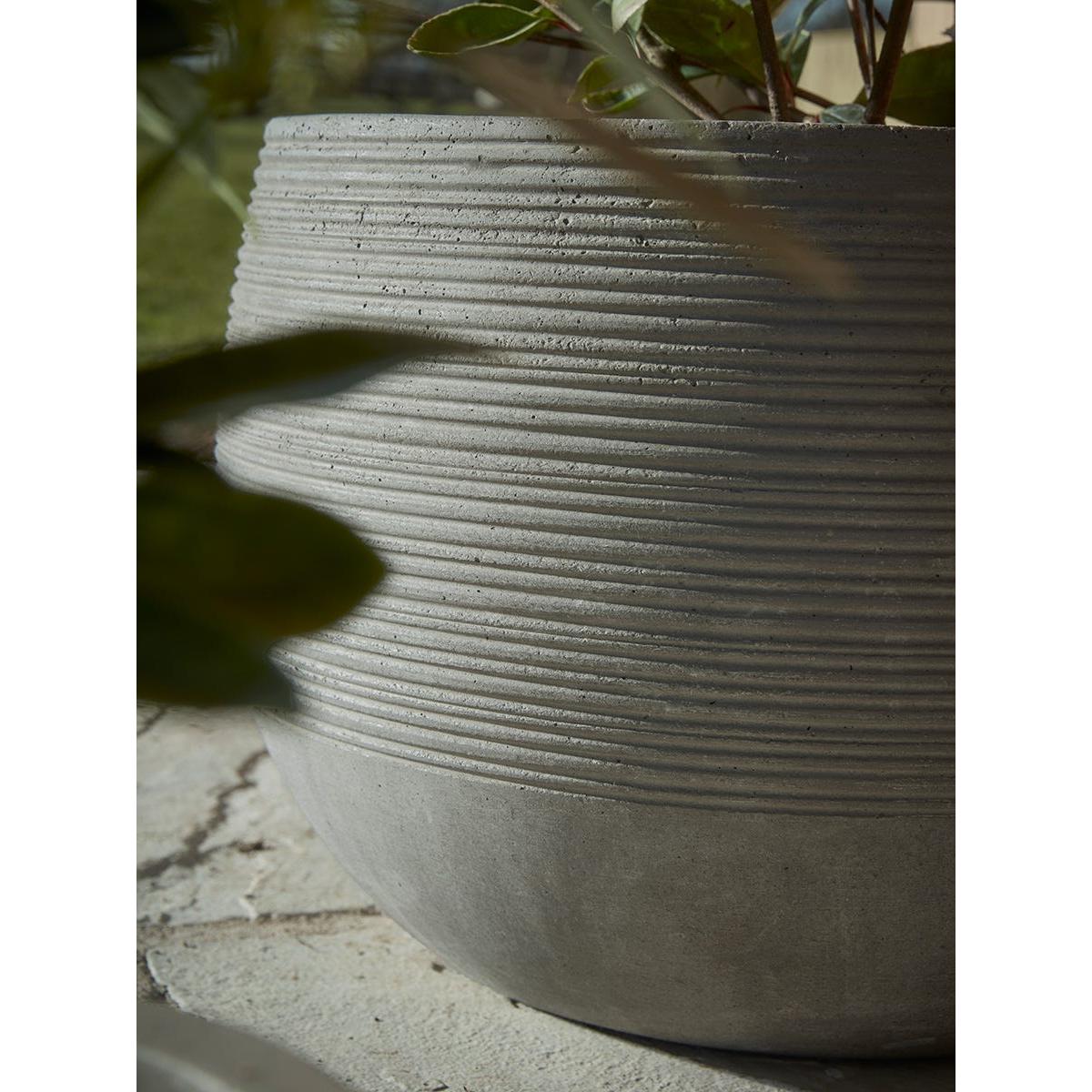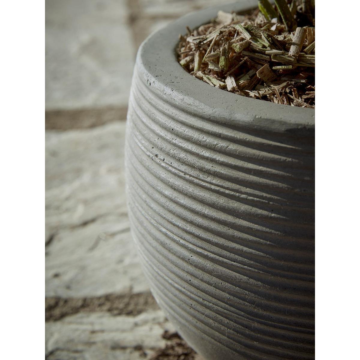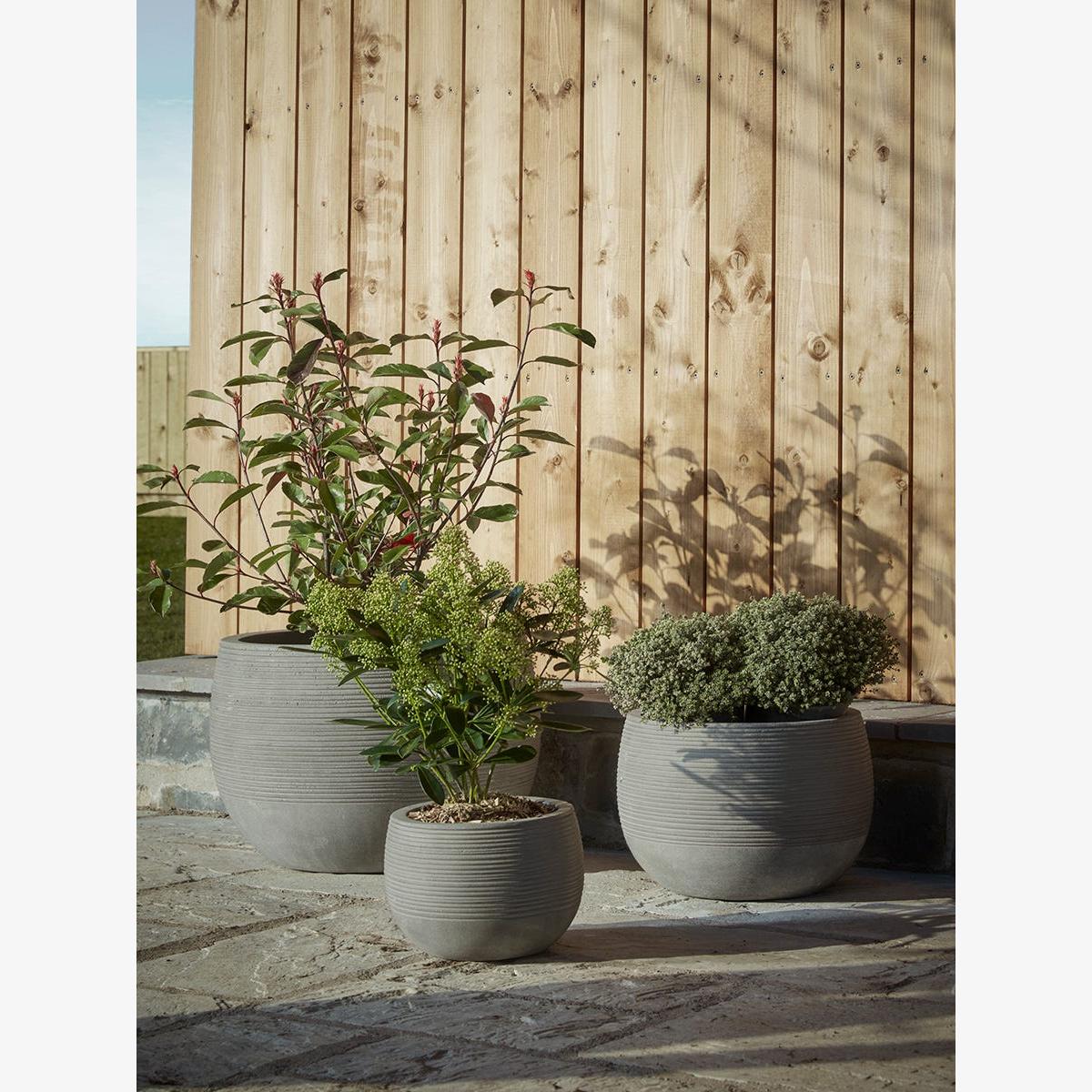 Crafted from concrete, the natural tones of the material shine through in our set of three Ribbed Concrete Planters. WIth a simple silholuette, the sculptural quality of the concrete is enhanced with ribbed detailing, finishing your outdoor space with a sleek and modern design. Place together in your garden for a layered look or spread out for the look of continuity.