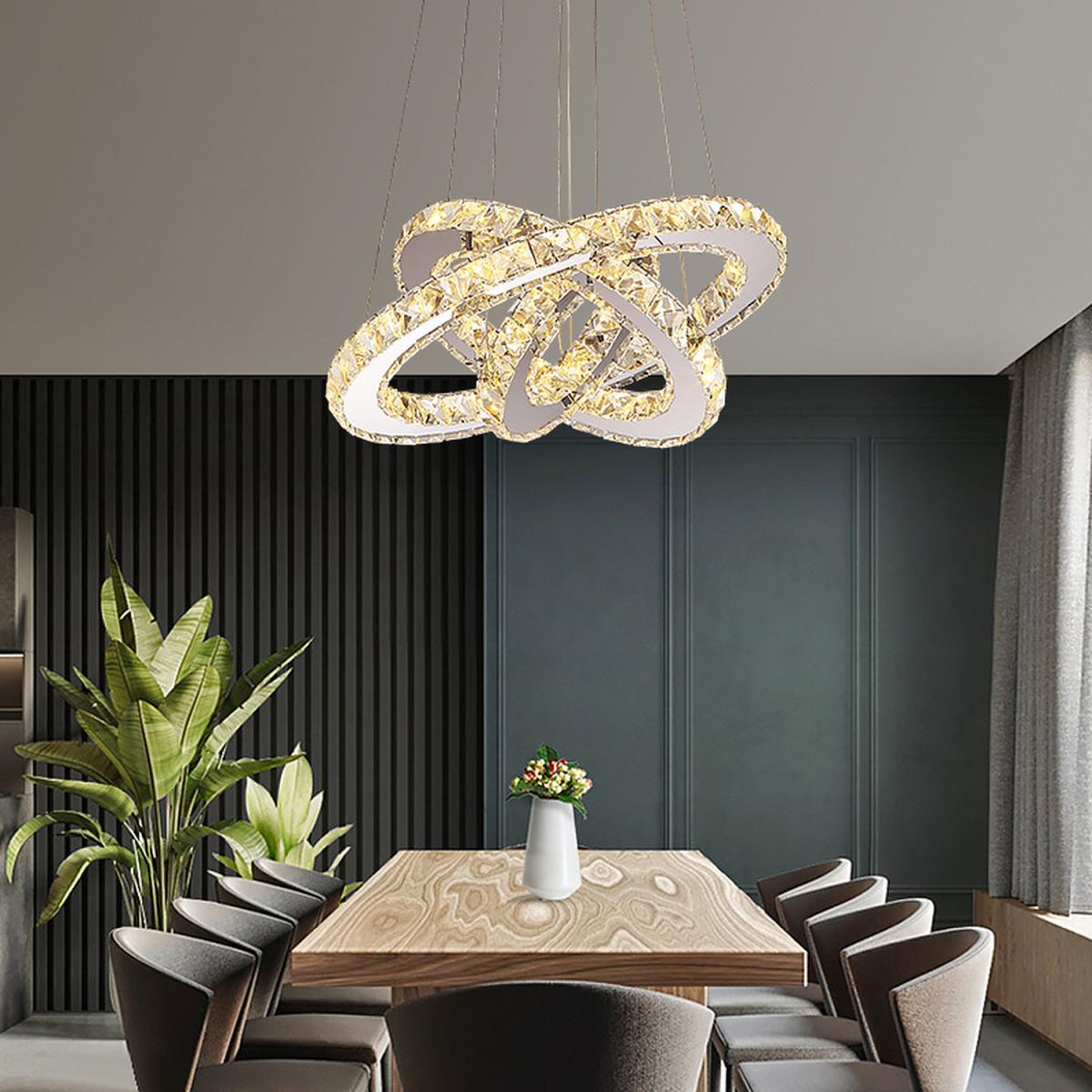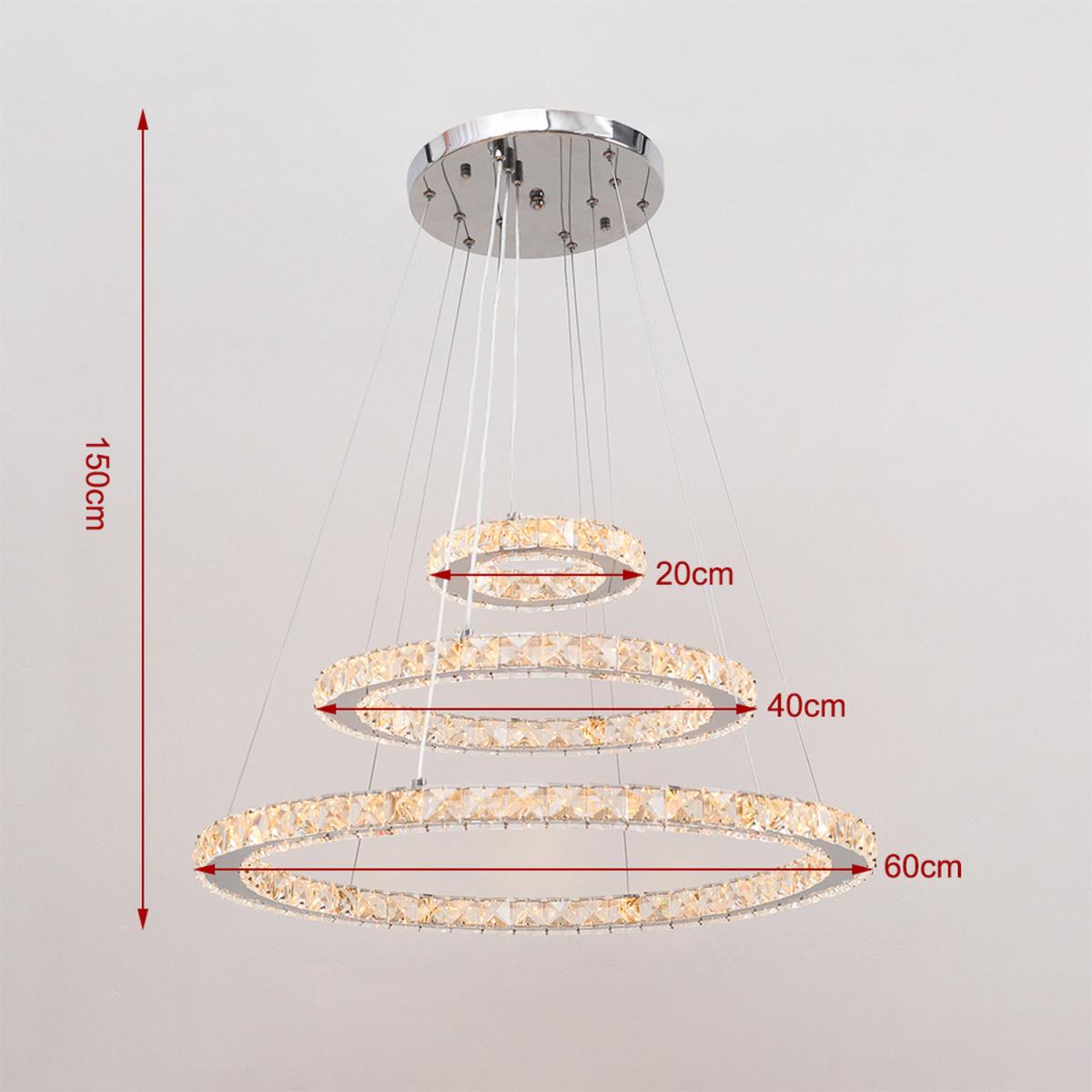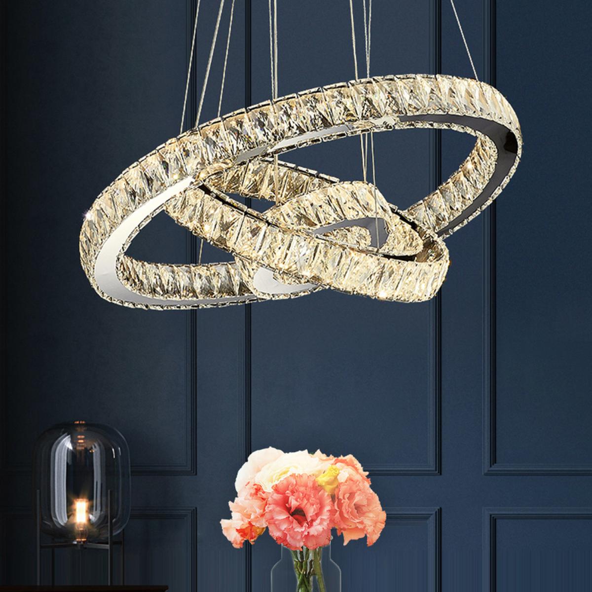 Three Rings LED Crystal Pendant Light - Silver / 72W
