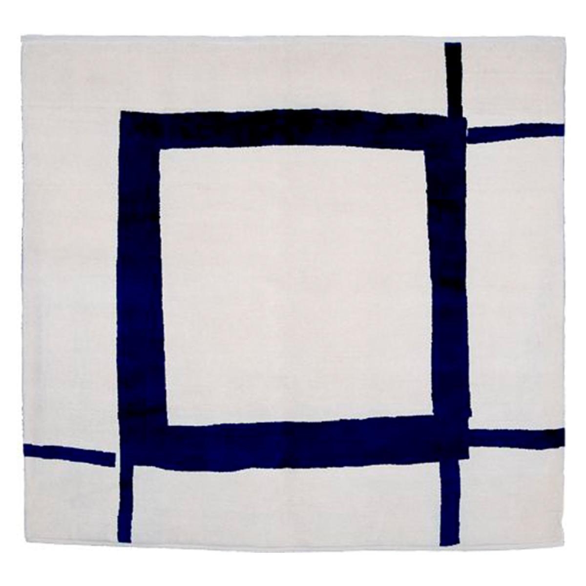 This Three Squares rug is an original design by British abstract artist, Sandra Blow, which has been beautifully transformed into a hand-knotted rug by Christopher Farr. The Three Squares rug showcases Sandra Blow's expressively gestural style through its collage-inspired blue and white fibres. During the 1950s, Blow was one of the pioneering abstract painters who brought a new kind of informality into British art. With a strong focus on creating both a tactile and visually engaging surface, Blow's work is rooted in abstract forms and an experimental approach towards materials. Since 1988, Christopher Farr has been at the forefront of contemporary rug design. Utilising only the finest yarn and dyes and collaborating with the most talented weavers from across the world, the creation of a Christopher Farr piece is a painstaking process that results in rugs that are nothing less than works of art. Hand-tufted in India from hand-spun Anatolian wool and irresistibly fluffy mohair, the Three Squares rug arrives beautifully packaged, displaying its unique edition number on the reverse. With just 150 available, this limited edition Christopher Farr rug offers the unique opportunity to invest in a stunning collision between art and textiles.