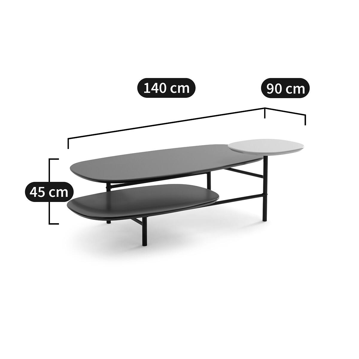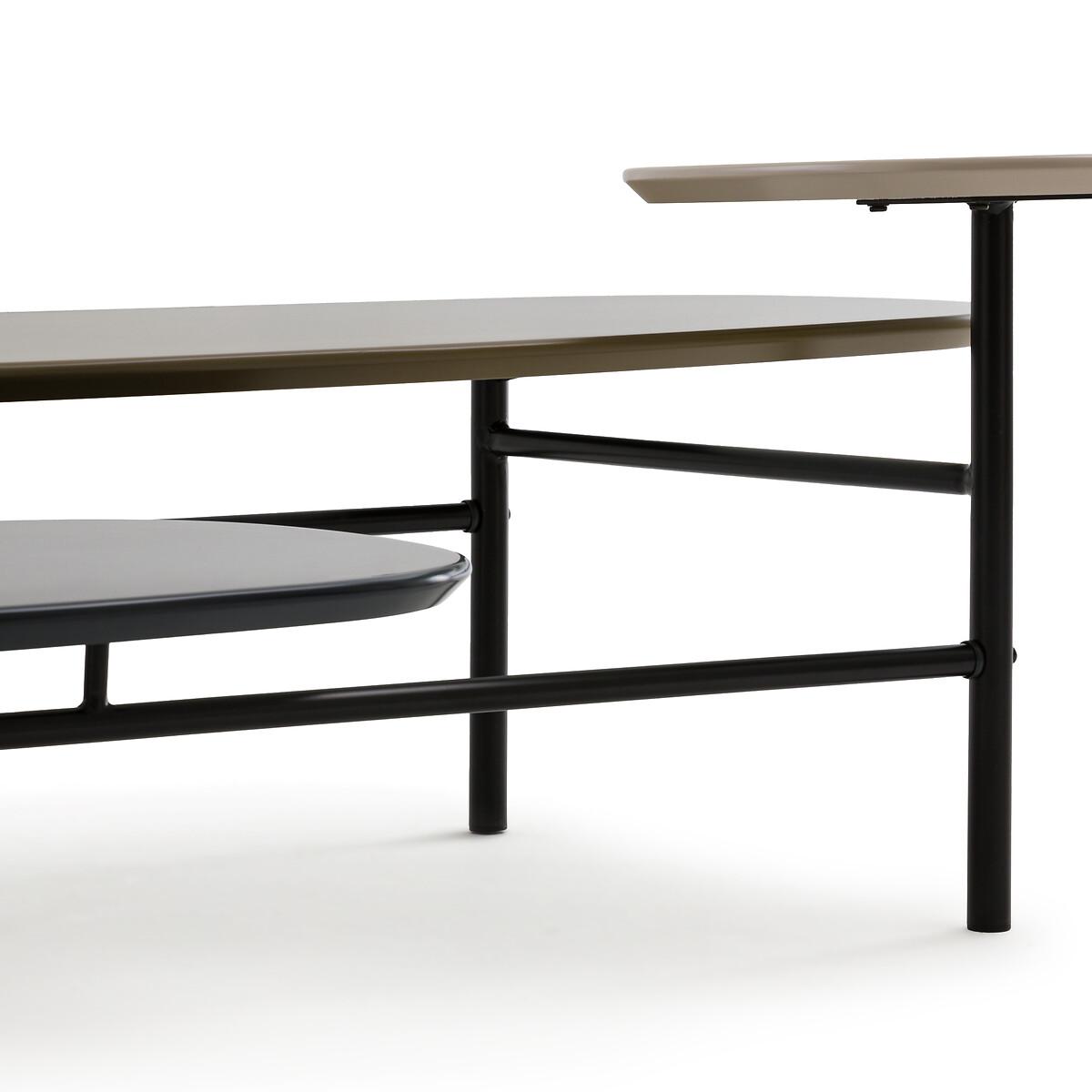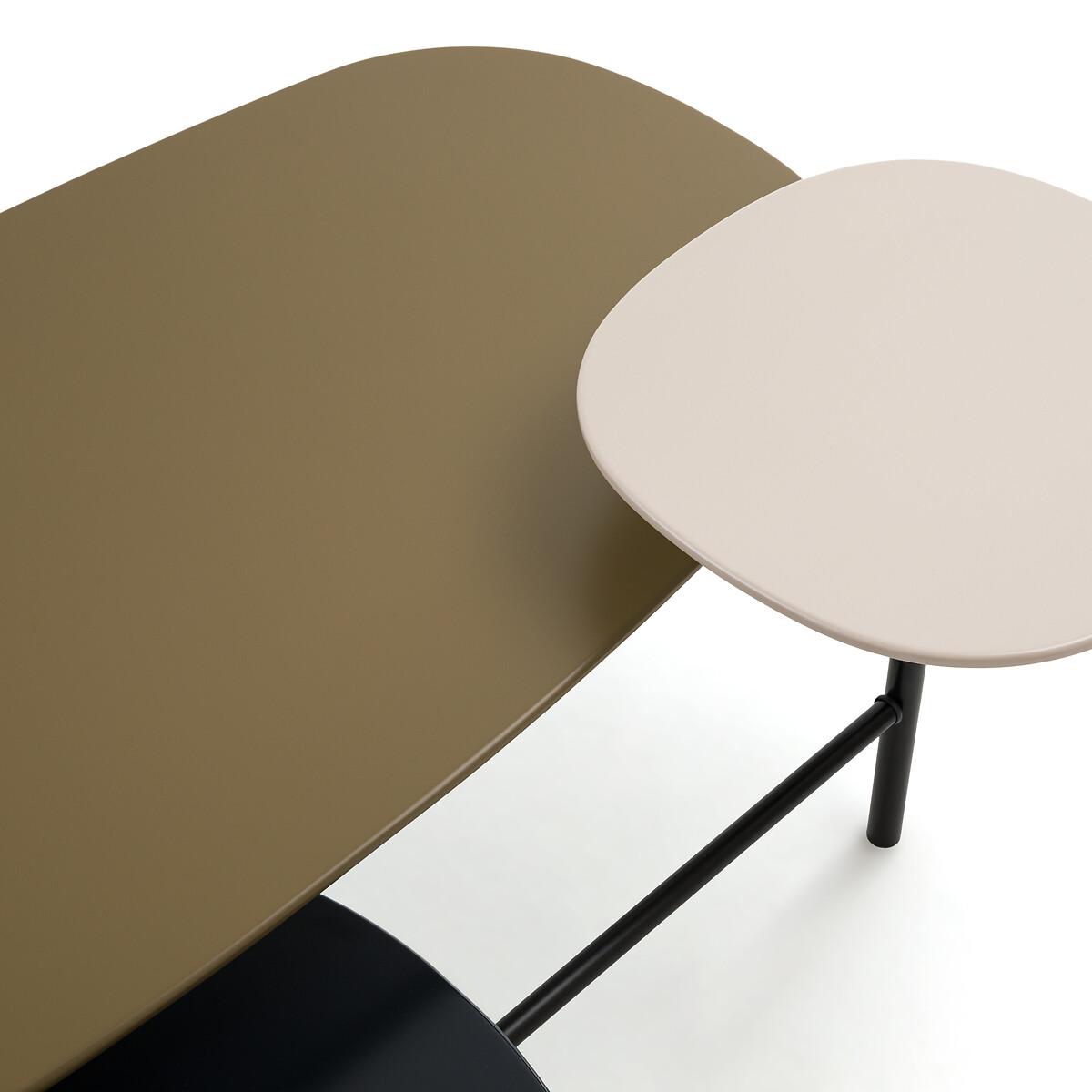 To celebrate our 10 years of design, we have chosen to reissue the collabs that have marked the history of La Redoute Interiors. (Re)discover these emblematic creations, published in limited series. Designed by Guillaume Delvigne, this coffee table creates the visual impact of a contemporary sculpture in the living room. With its three lacquered tops with variable geometry and its tubular base in matte black steel, it is as beautiful as it is functional. Elegant and totemic. Product Details • 3 coloured tops in matte lacquered MDF, thickness 22mm, polyurethane finish • FSC® certified wood • Base in epoxy-finished iron tubes, matte black lacquered • Polypropylene glides. Care Advice • To protect your coffee table, consider trivets, coasters and placemats. Dimensions. Overall • Width: 140cm • Height: 45cm • Depth: 90cm. Usable space • Large tabletop: L120 x H20 x D60cm • Middle tabletop: L80 x H20 x D50cm • Small top: L40 x H20 x D40cmDelivery:. Sold pre-assembled. Available for home delivery. • WOOD FROM SUSTAINABLY MANAGED FORESTS. FSC® certified wood comes from forests that are environmentally, socially and economically well managed. Dimensions and weight of parcel2 parcels • L81 x H15 x D62cm. 5.2kg • L129 x H9 x D67cm. 19.6kg